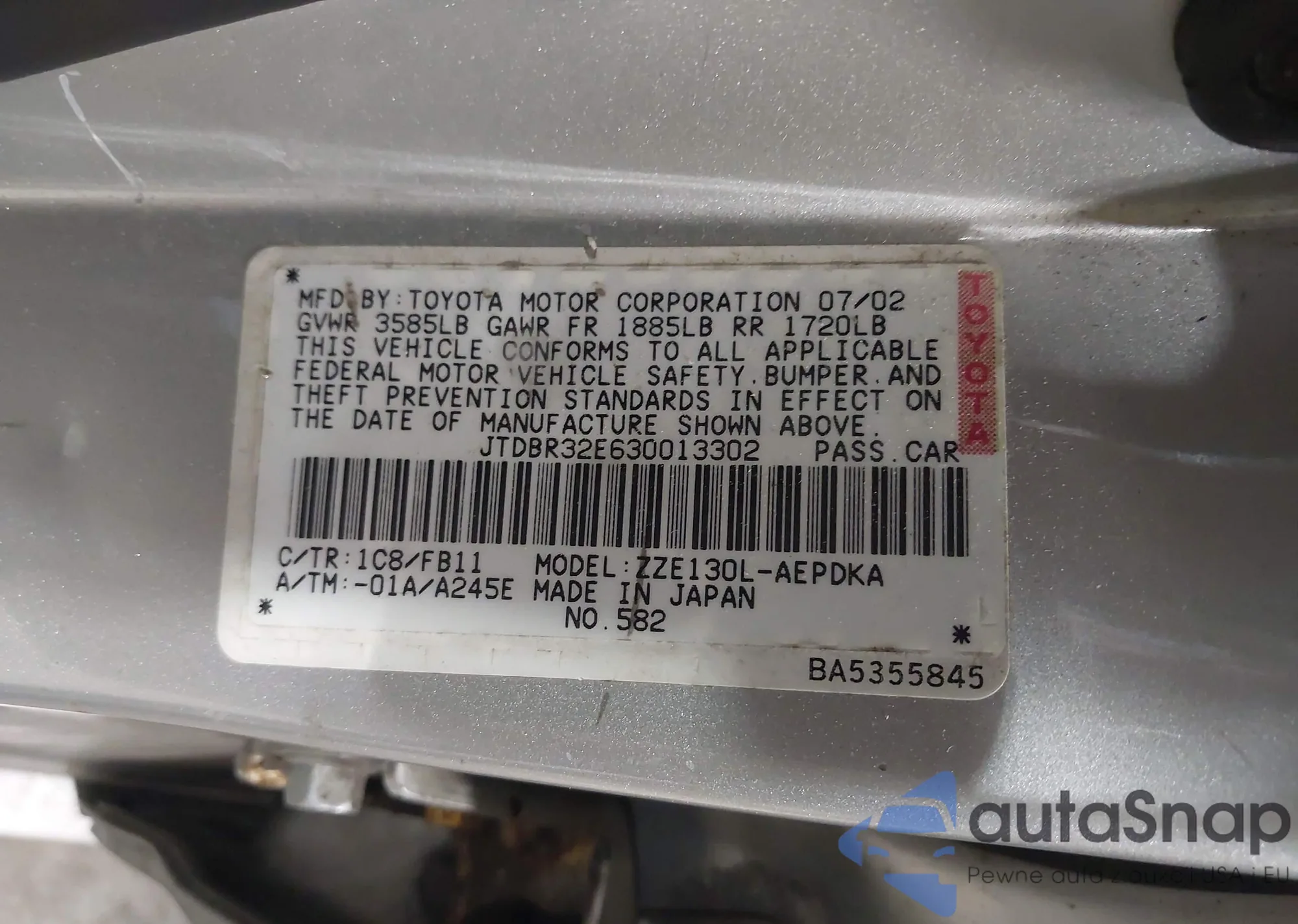 VIN: JTDBR32E630013302