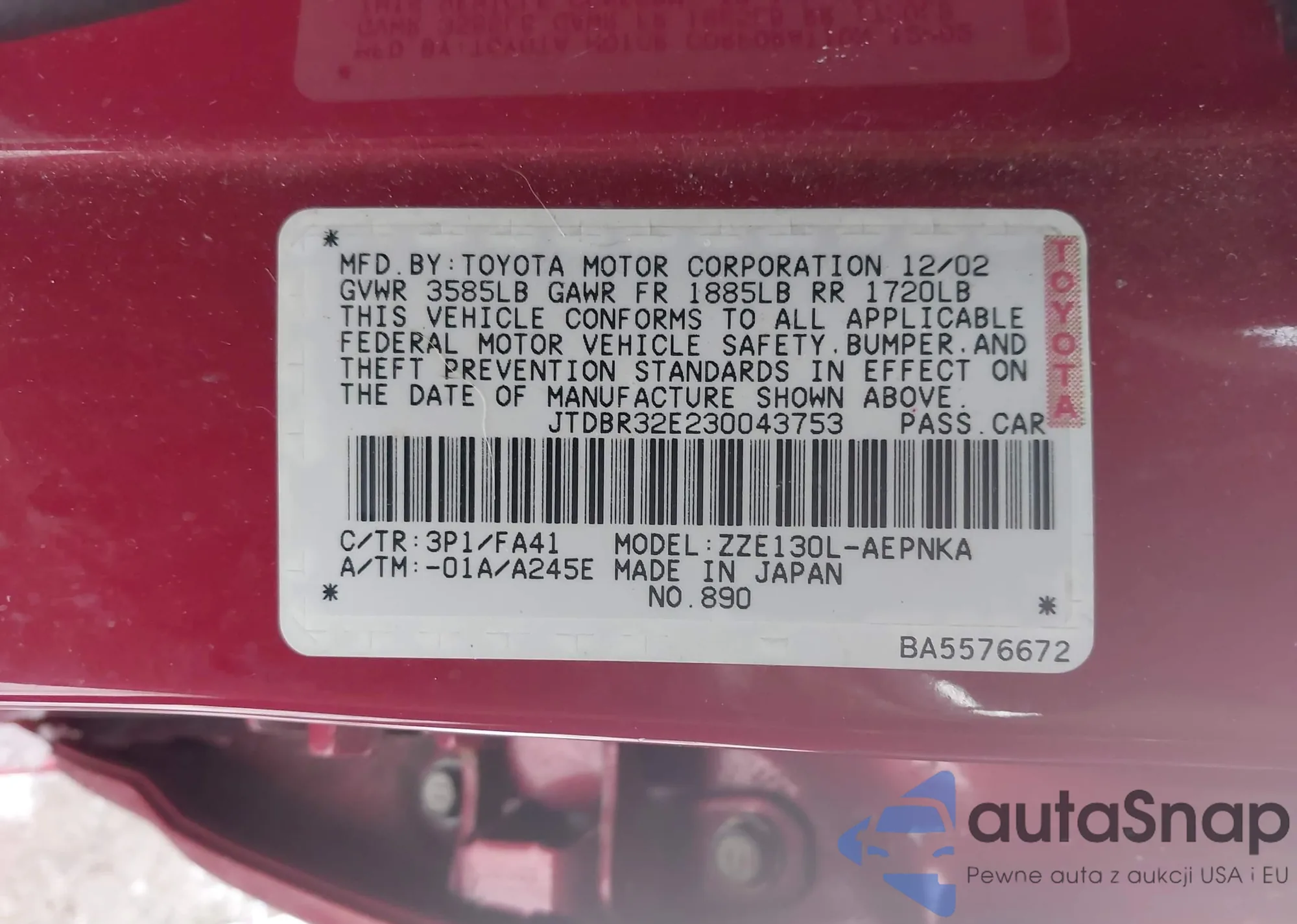 VIN: JTDBR32E230043753