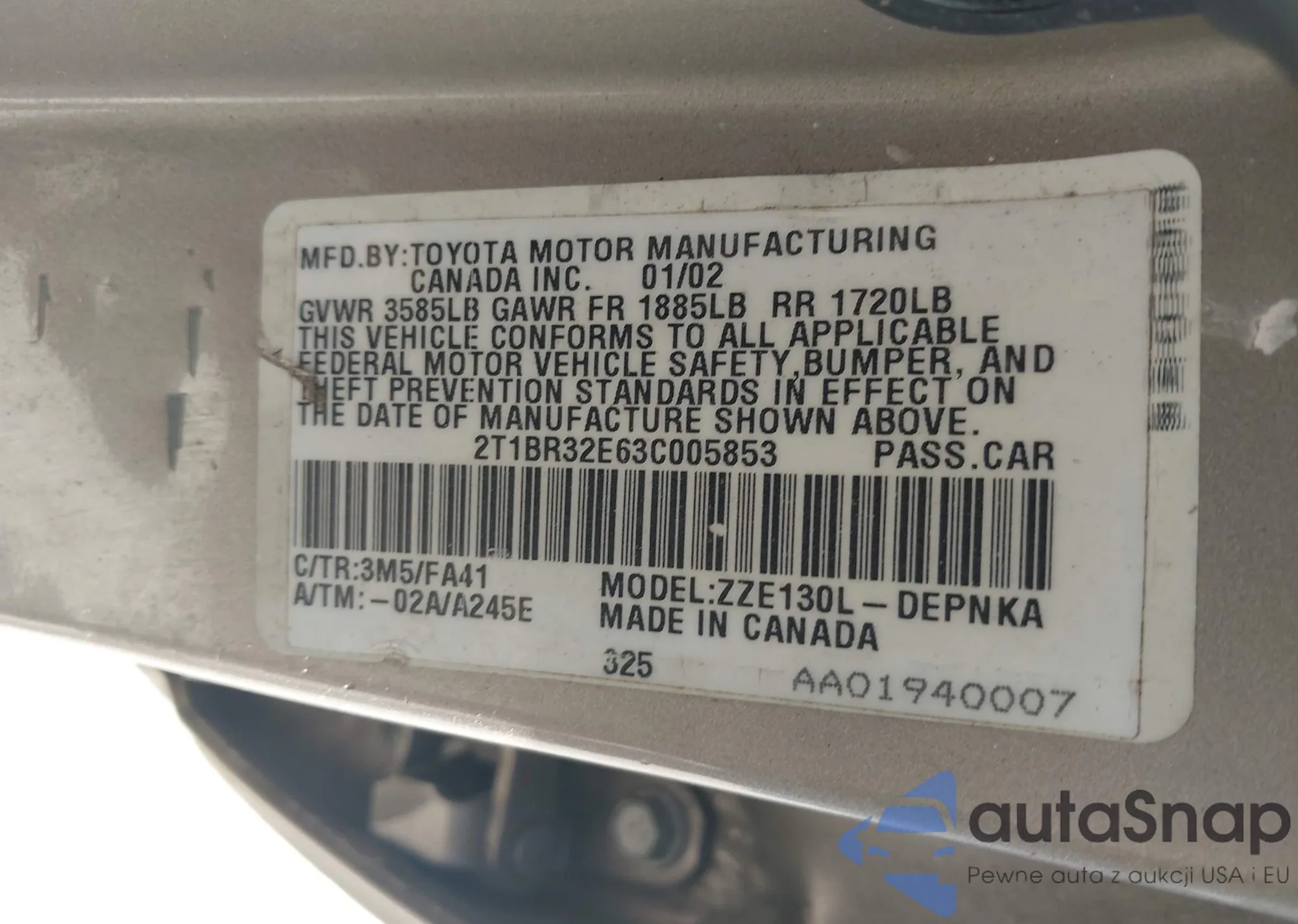 VIN: 2T1BR32E63C005853