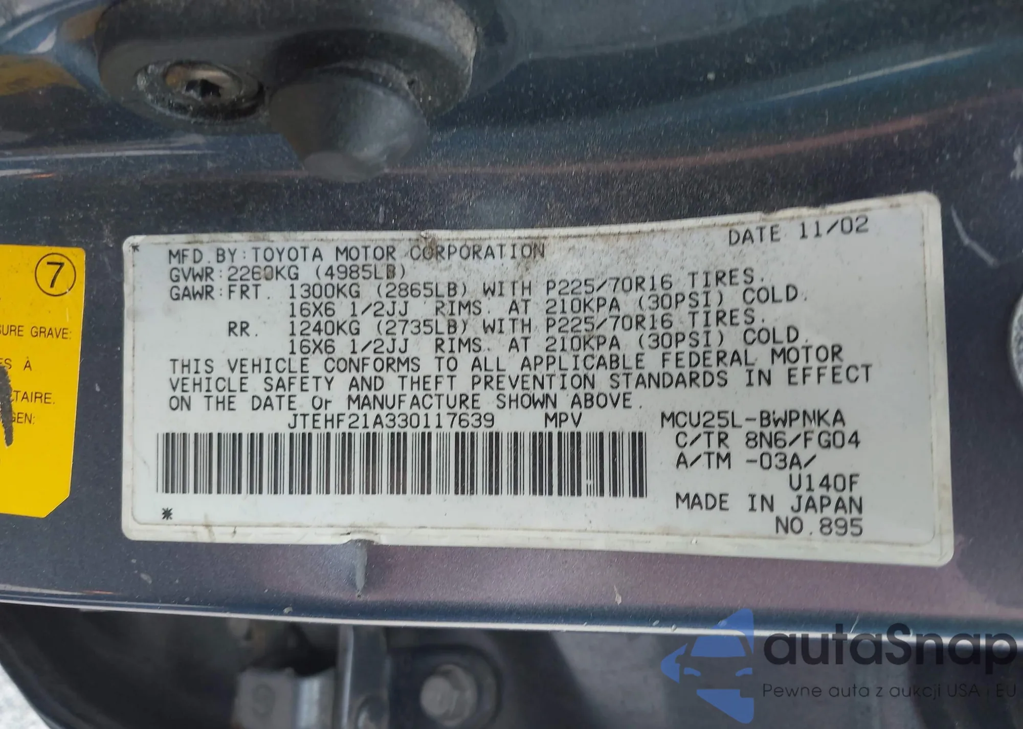VIN: JTEHF21A330117639