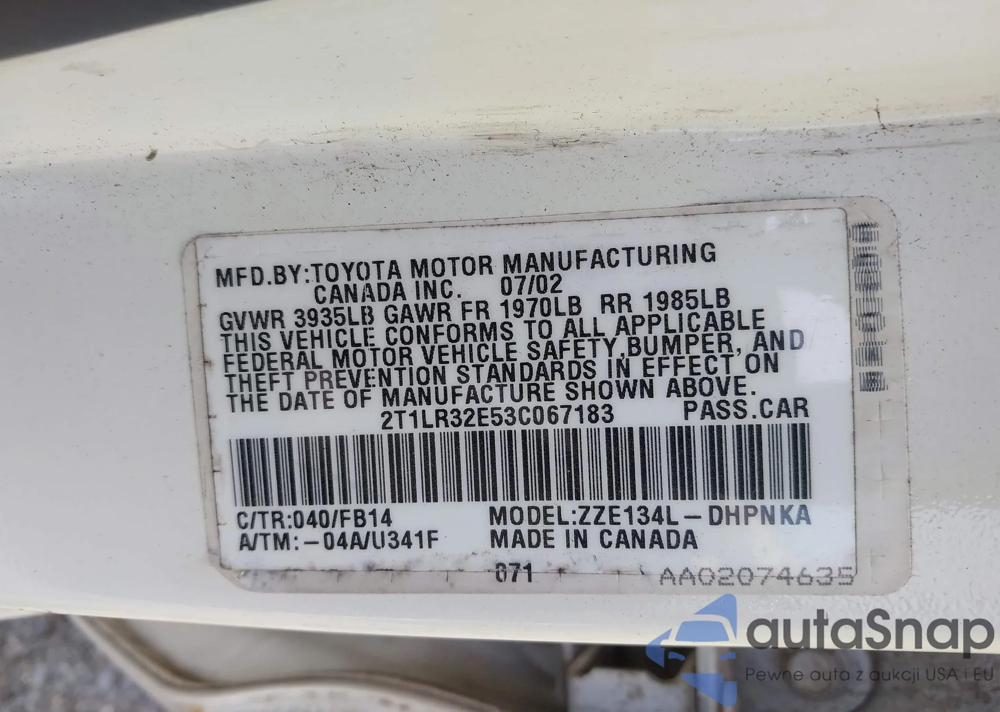 VIN: 2T1LR32E53C067183