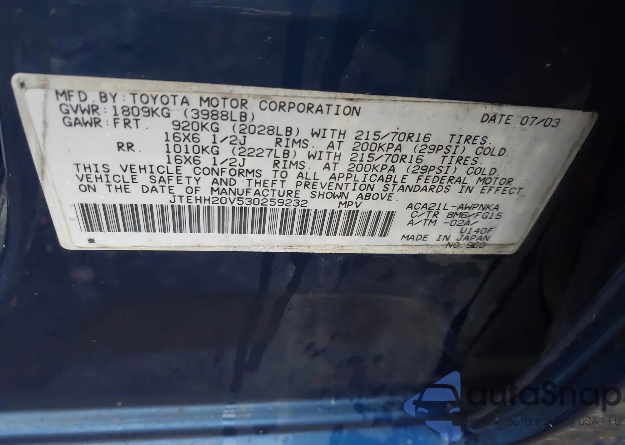 VIN: JTEHH20V530259232