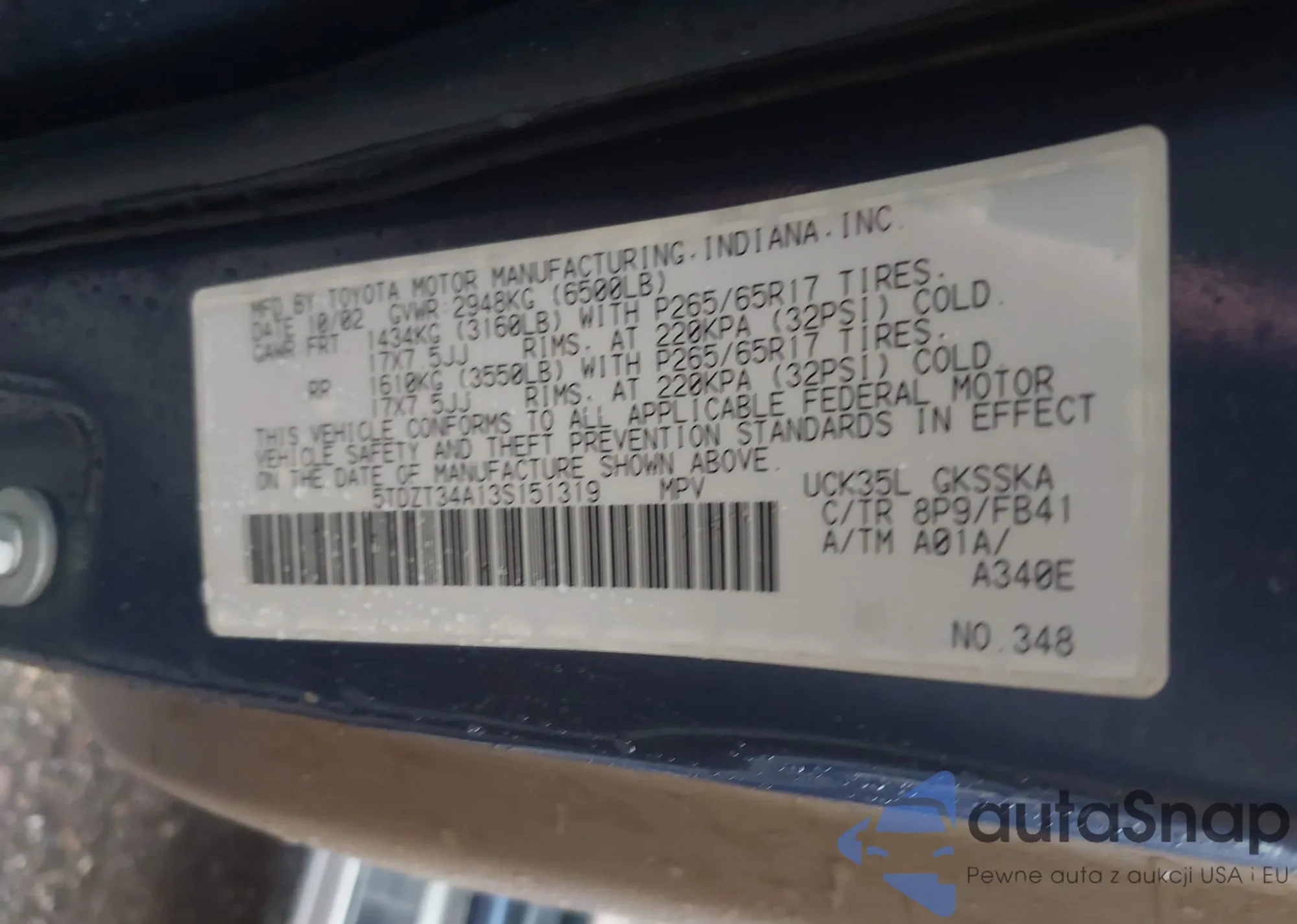 VIN: 5TDZT34A13S151319