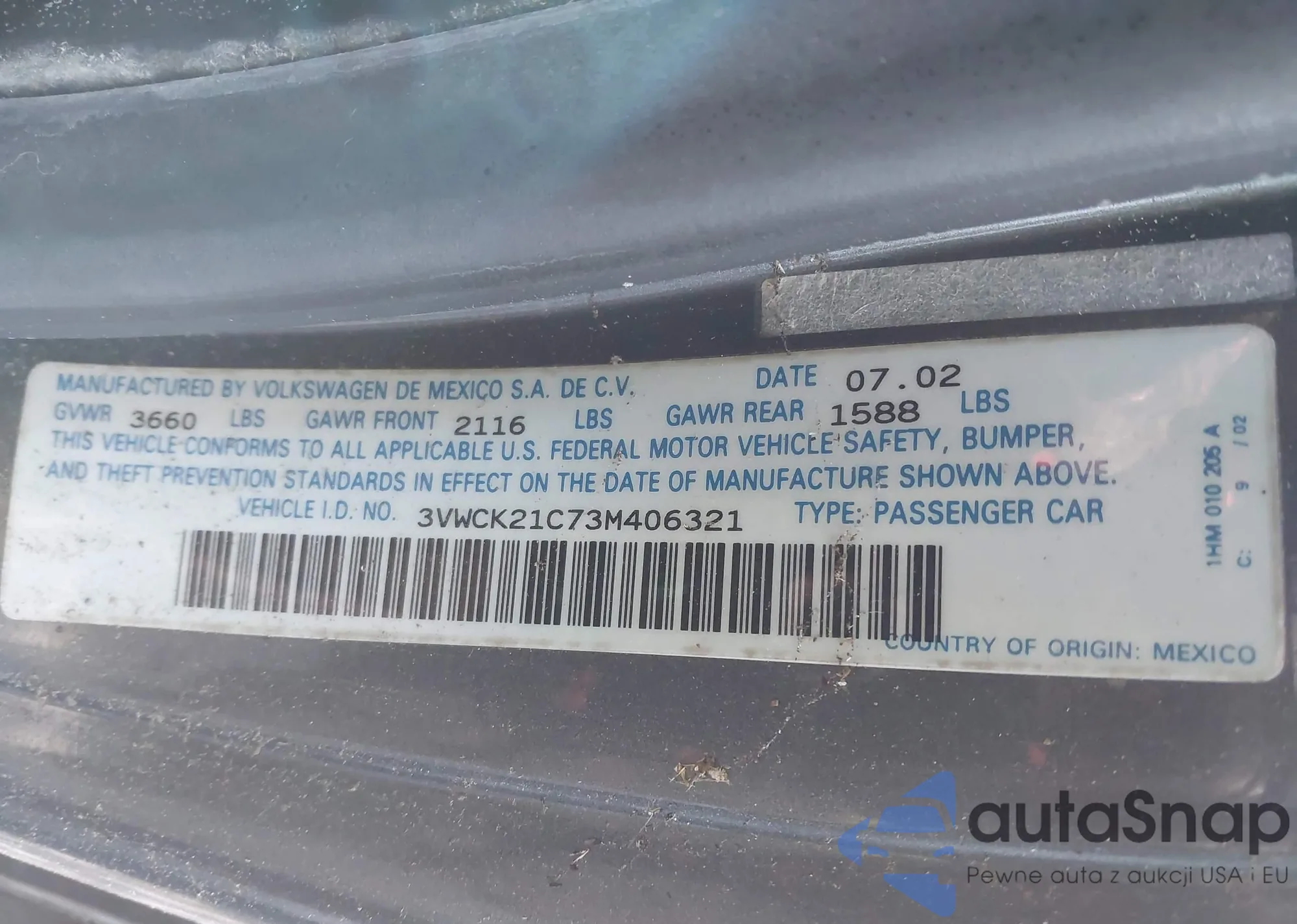 VIN: 3VWCK21C73M406321