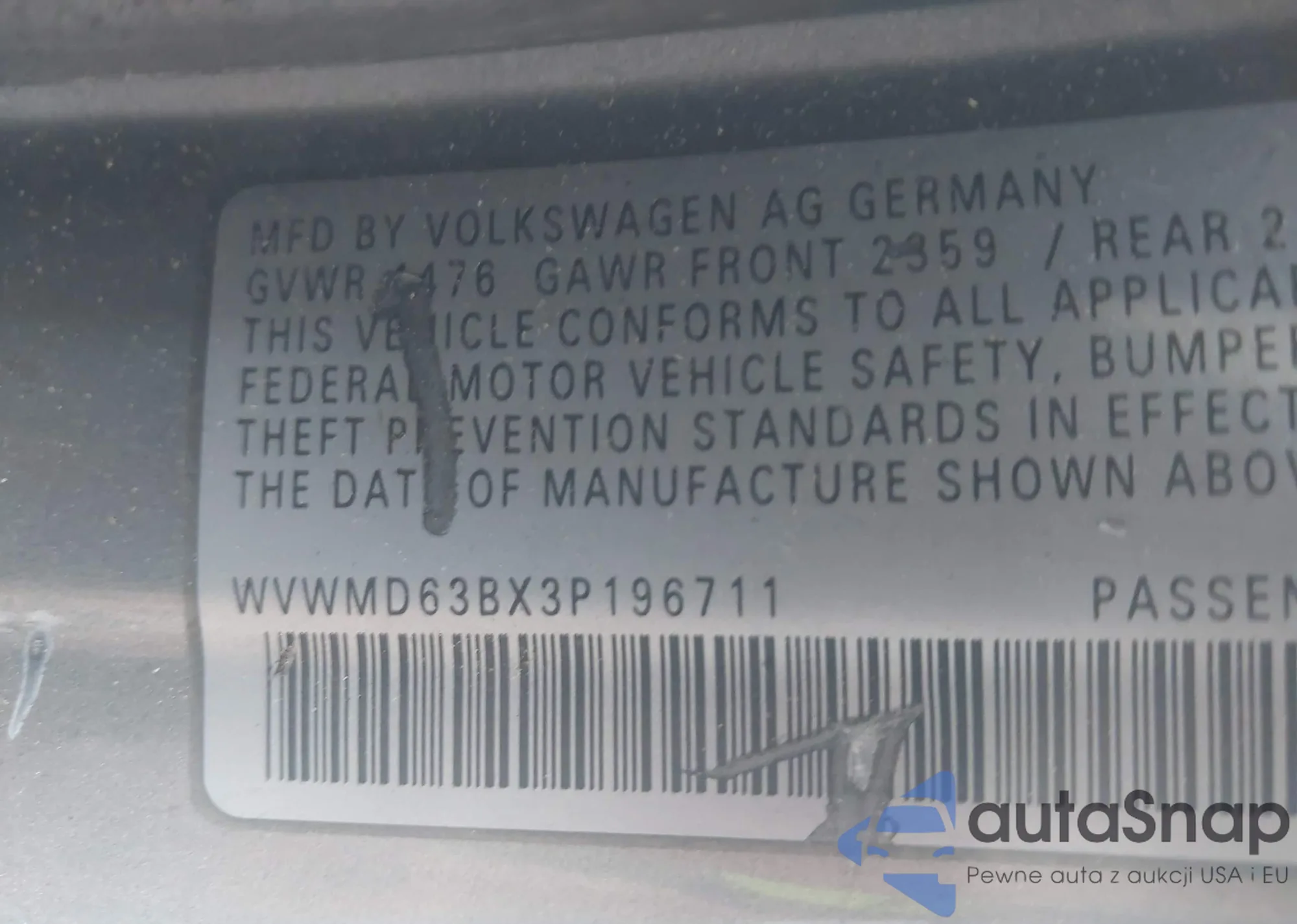 Samochód Volkswagen Passat 2003 (VIN WVWMD63BX3P196711) ma dokumenty uniemożliwiające rejestrację. Mogą pojawić się trudności przy eksporcie i rejestracji. Skontaktuj się z ekspertami AutaSnap w celu znalezienia alternatywy.