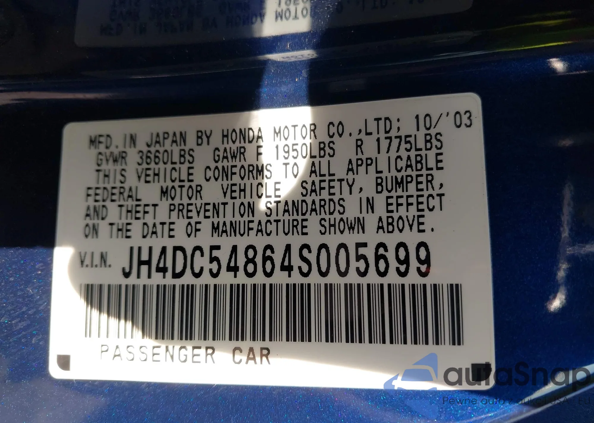 VIN: JH4DC54864S005699