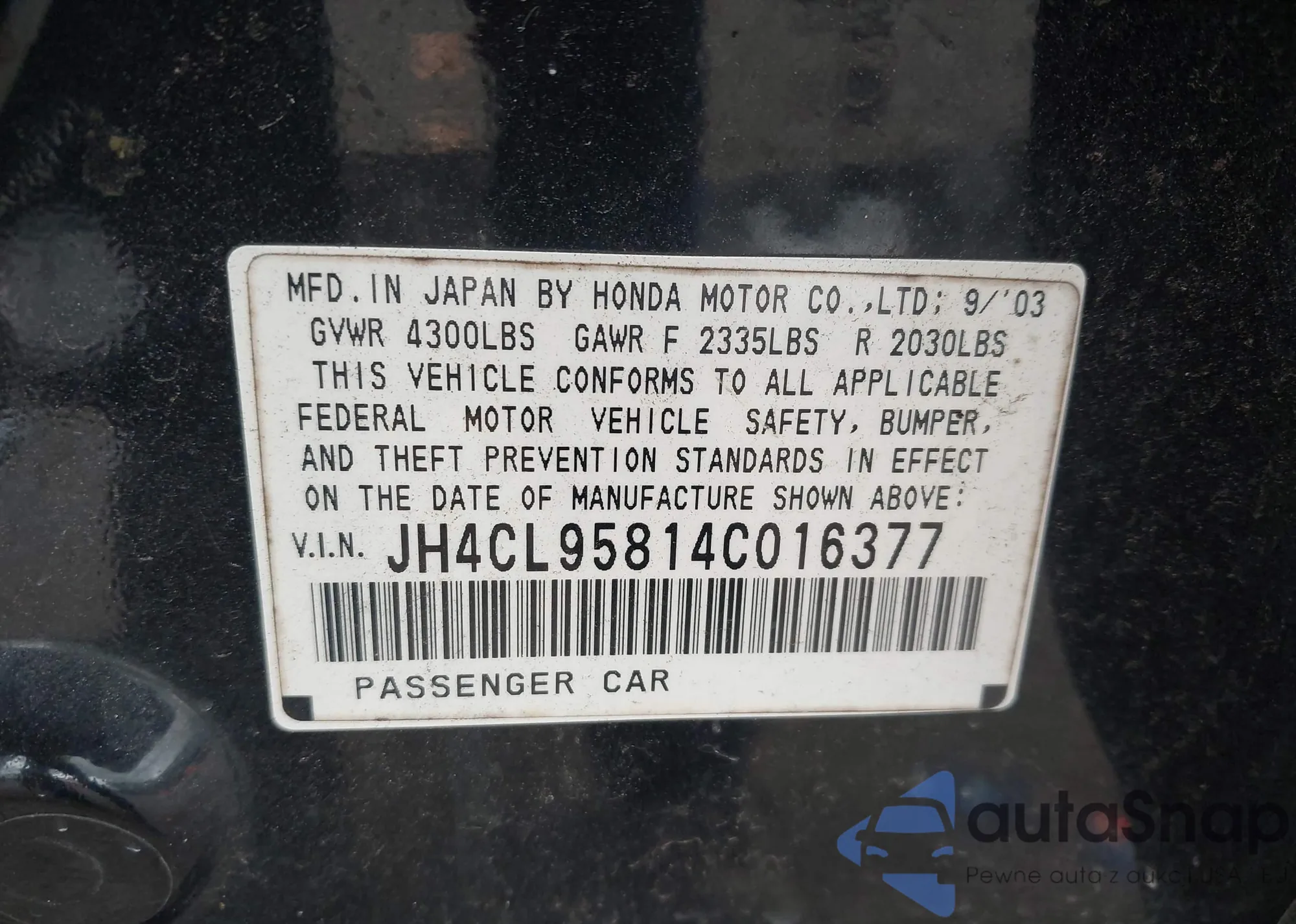 • VIN: JH4CL95814C016377
