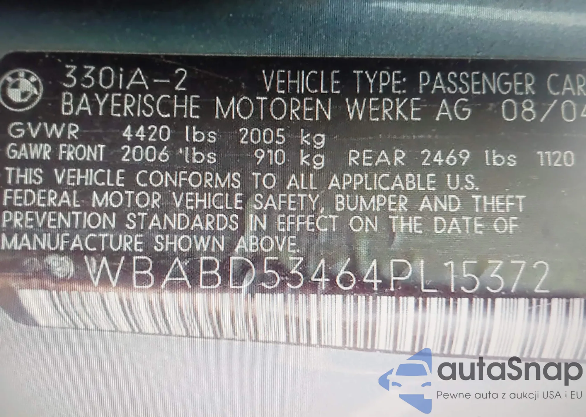 VIN: WBABD53464PL15372