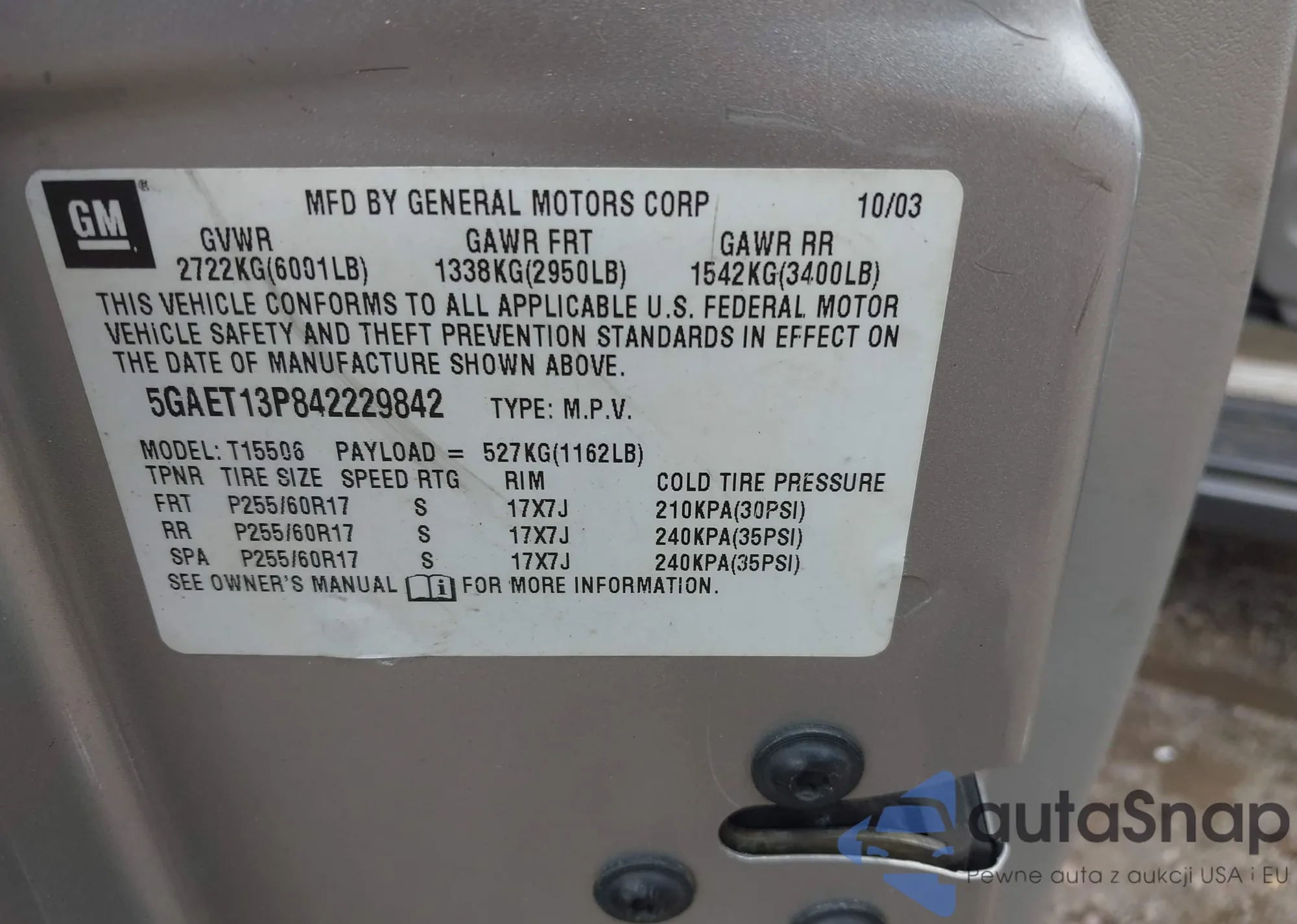 VIN: 5GAET13P842229842