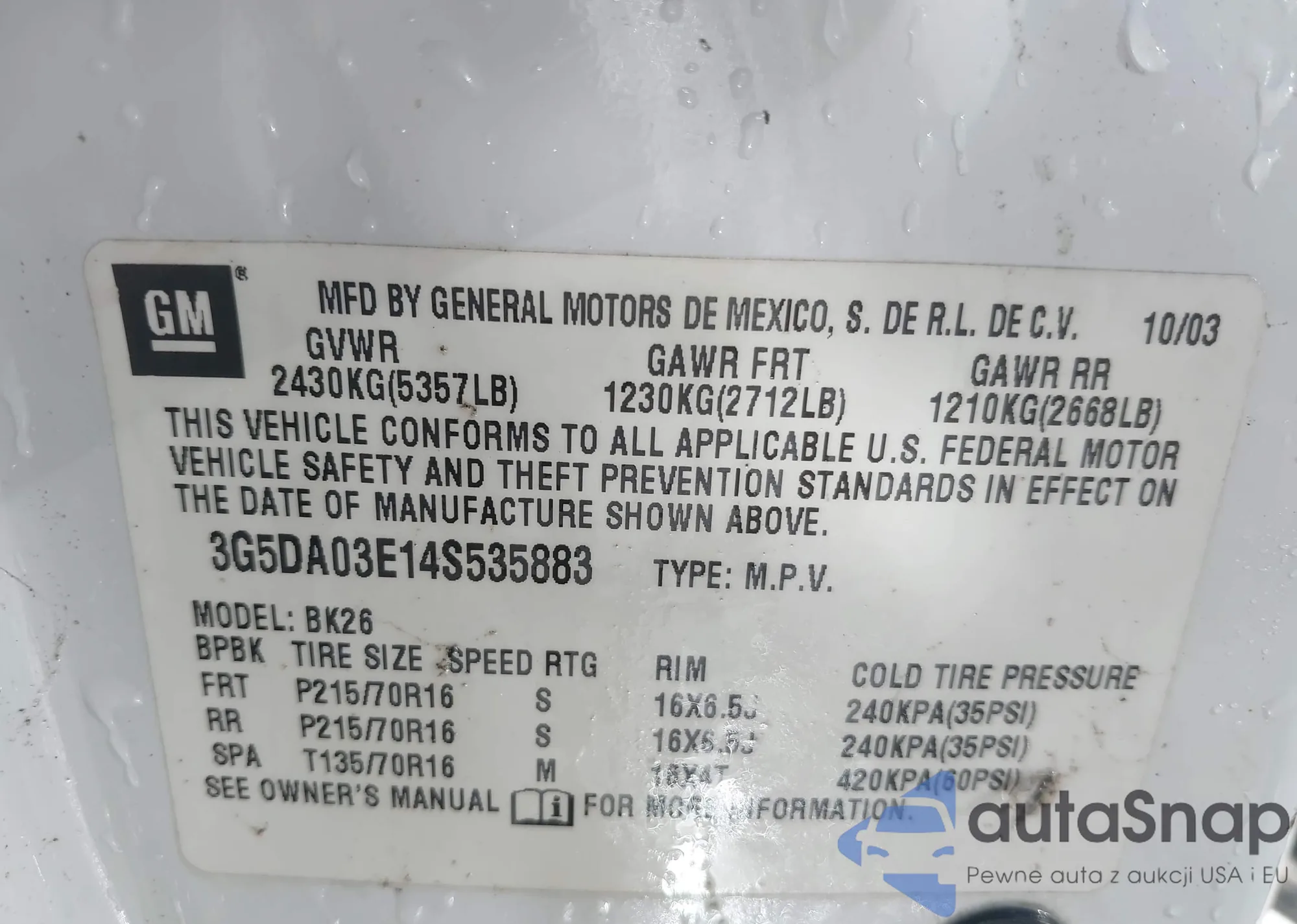VIN: 3G5DA03E14S535883