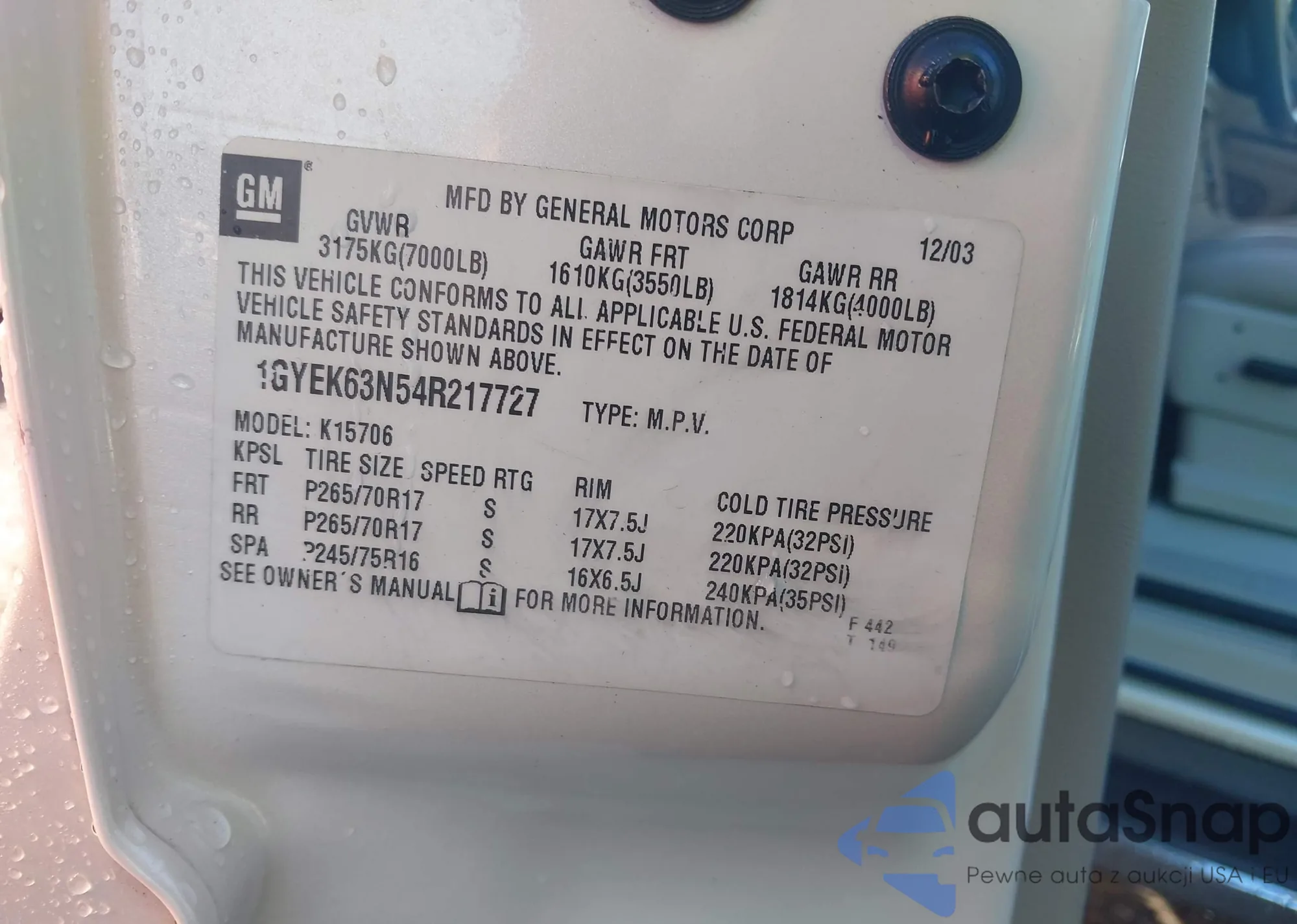 VIN: 1GYEK63N54R217727