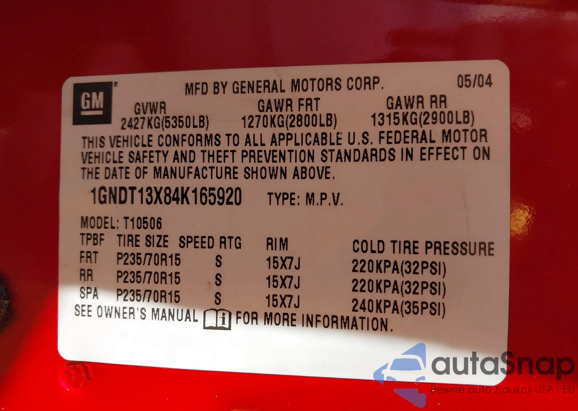 VIN: 1GNDT13X84K165920
