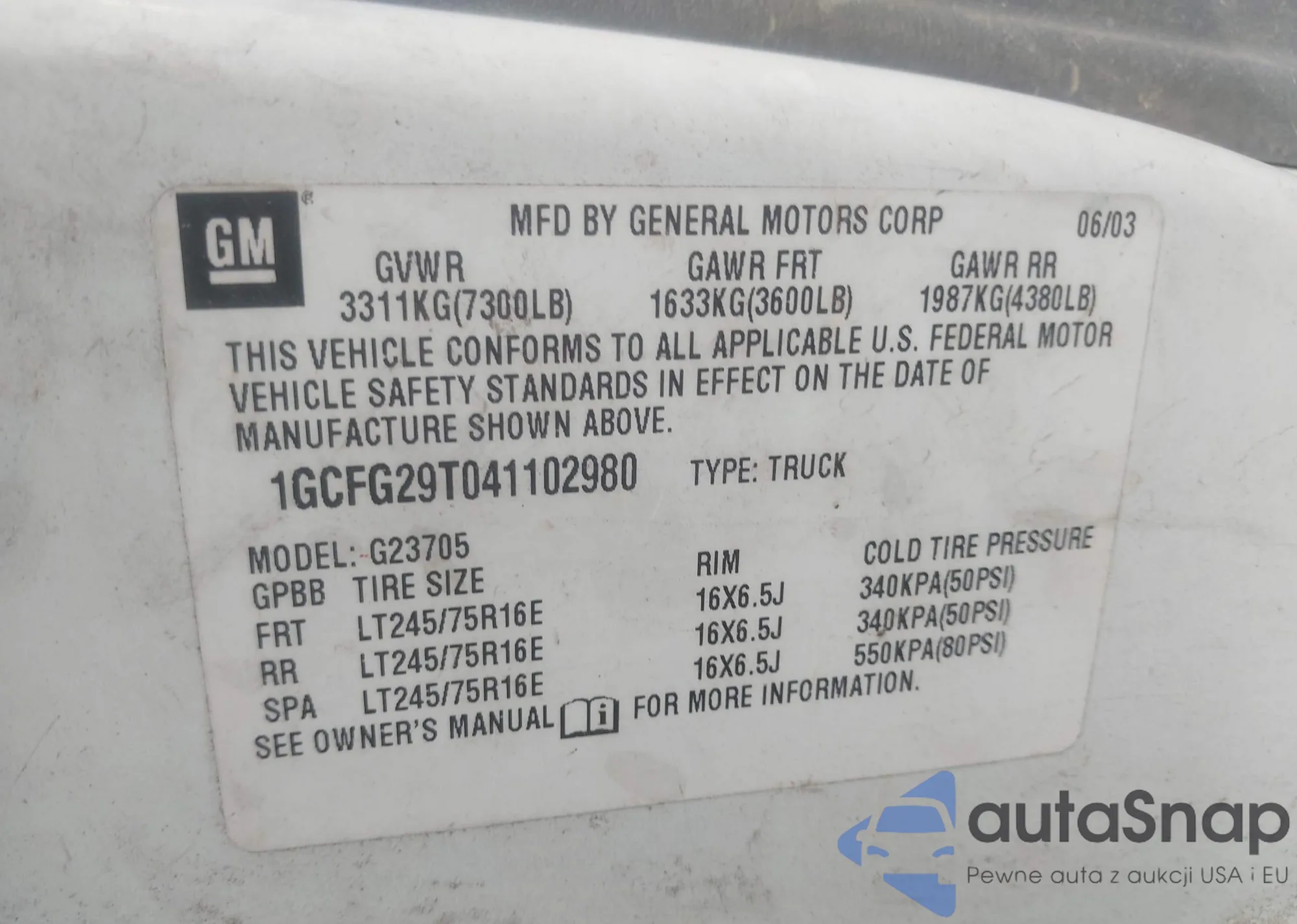 • VIN: 1GCFG29T041102980