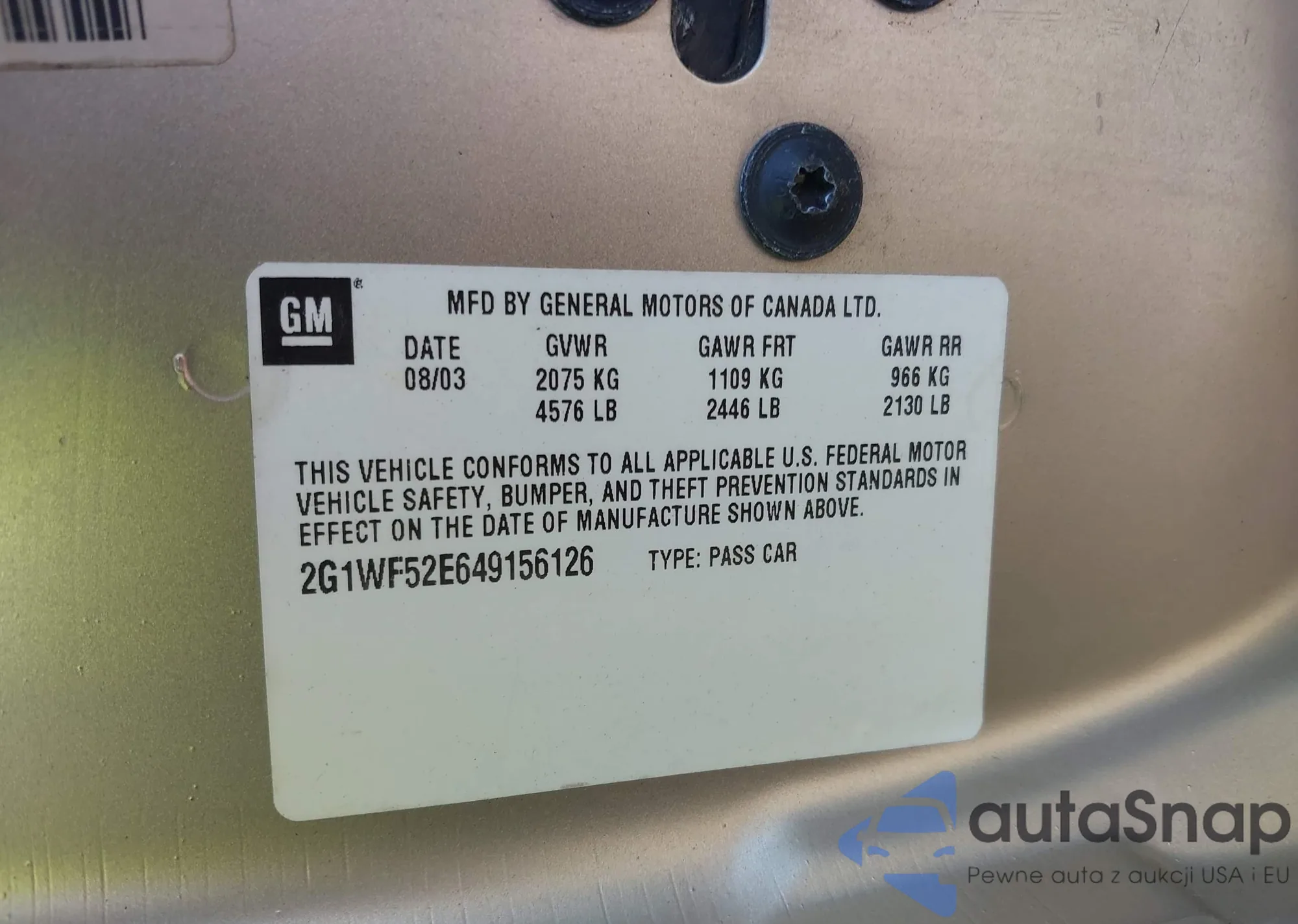 VIN: 2G1WF52E649156126