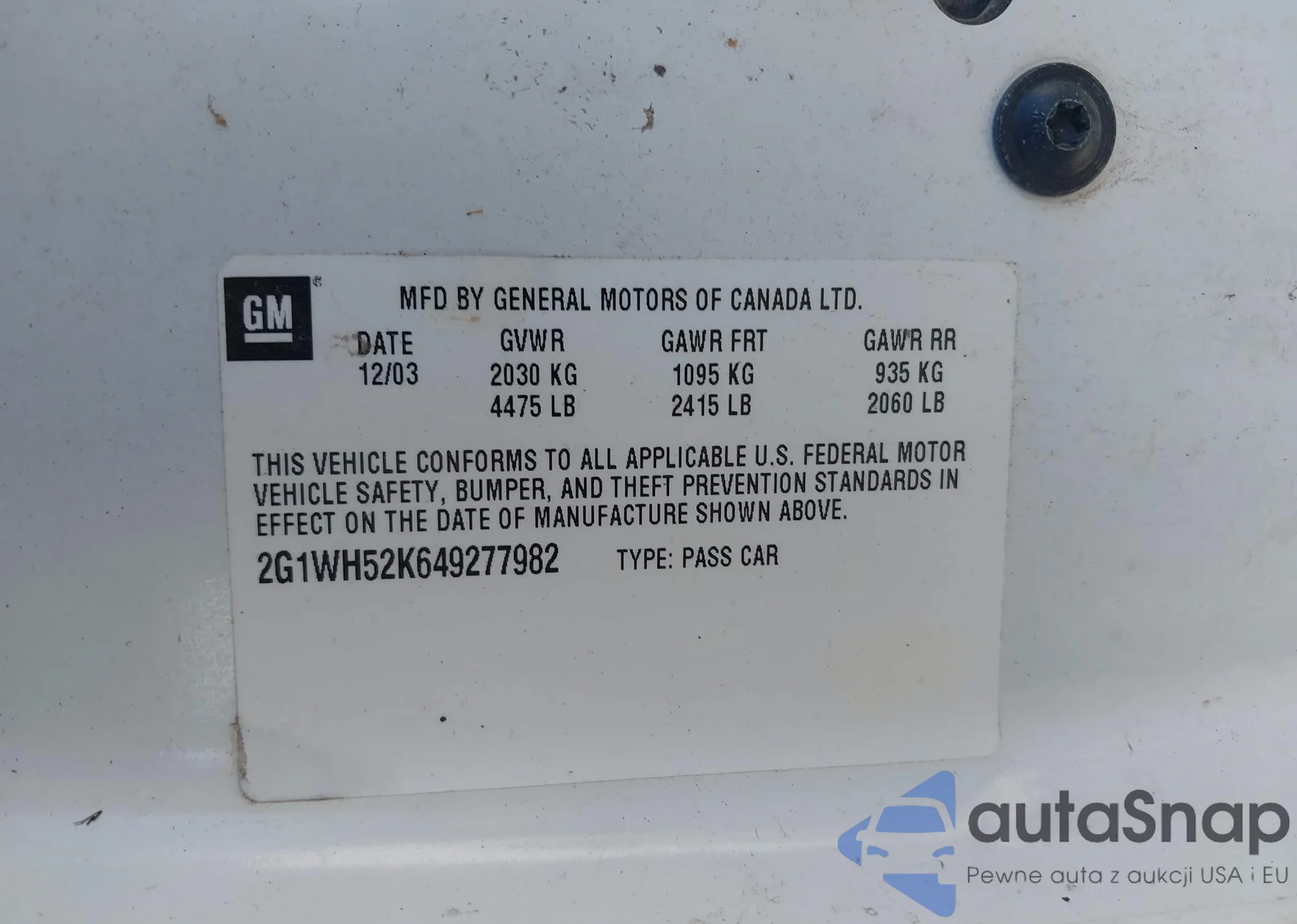 VIN: 2G1WH52K649277982