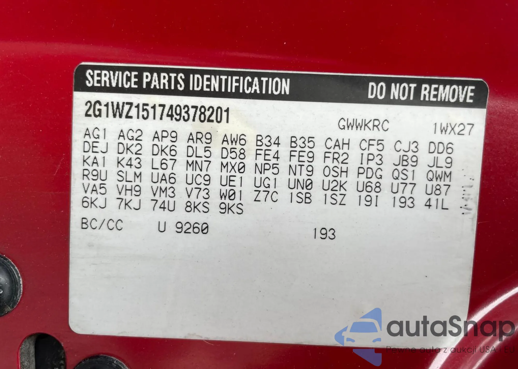 VIN: 2G1WZ151749378201