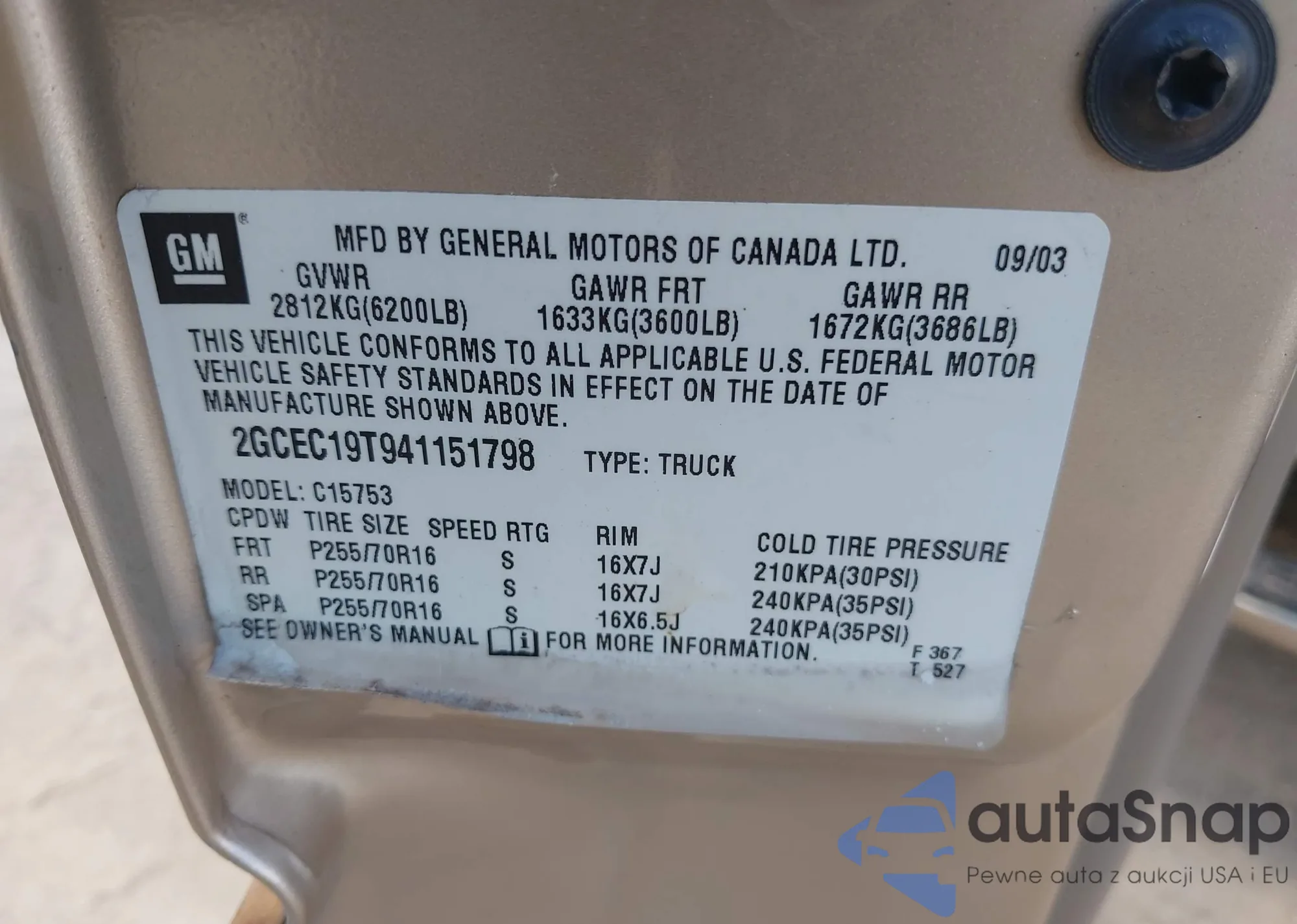 VIN: 2GCEC19T941151798