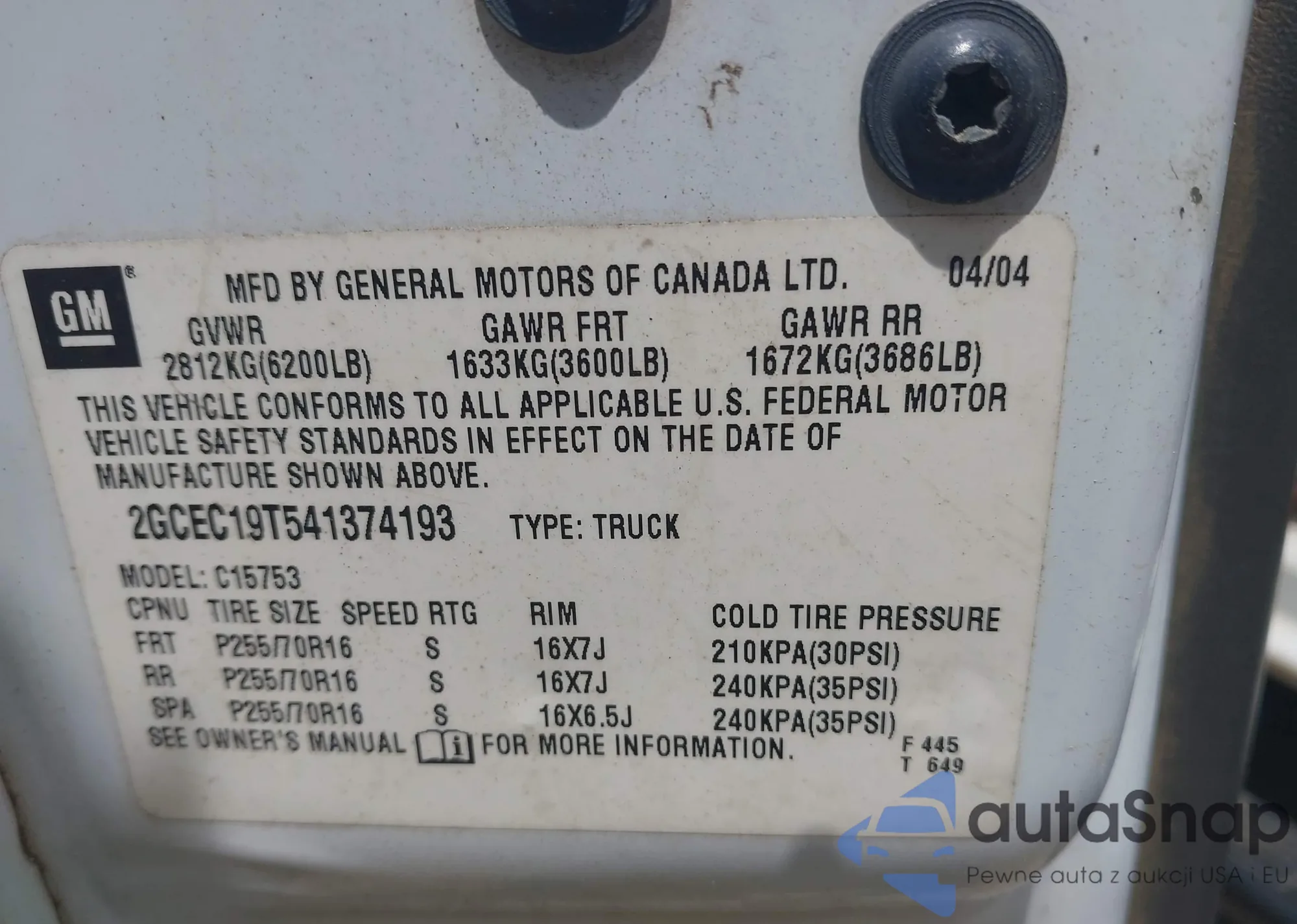 VIN: 2GCEC19T541374193