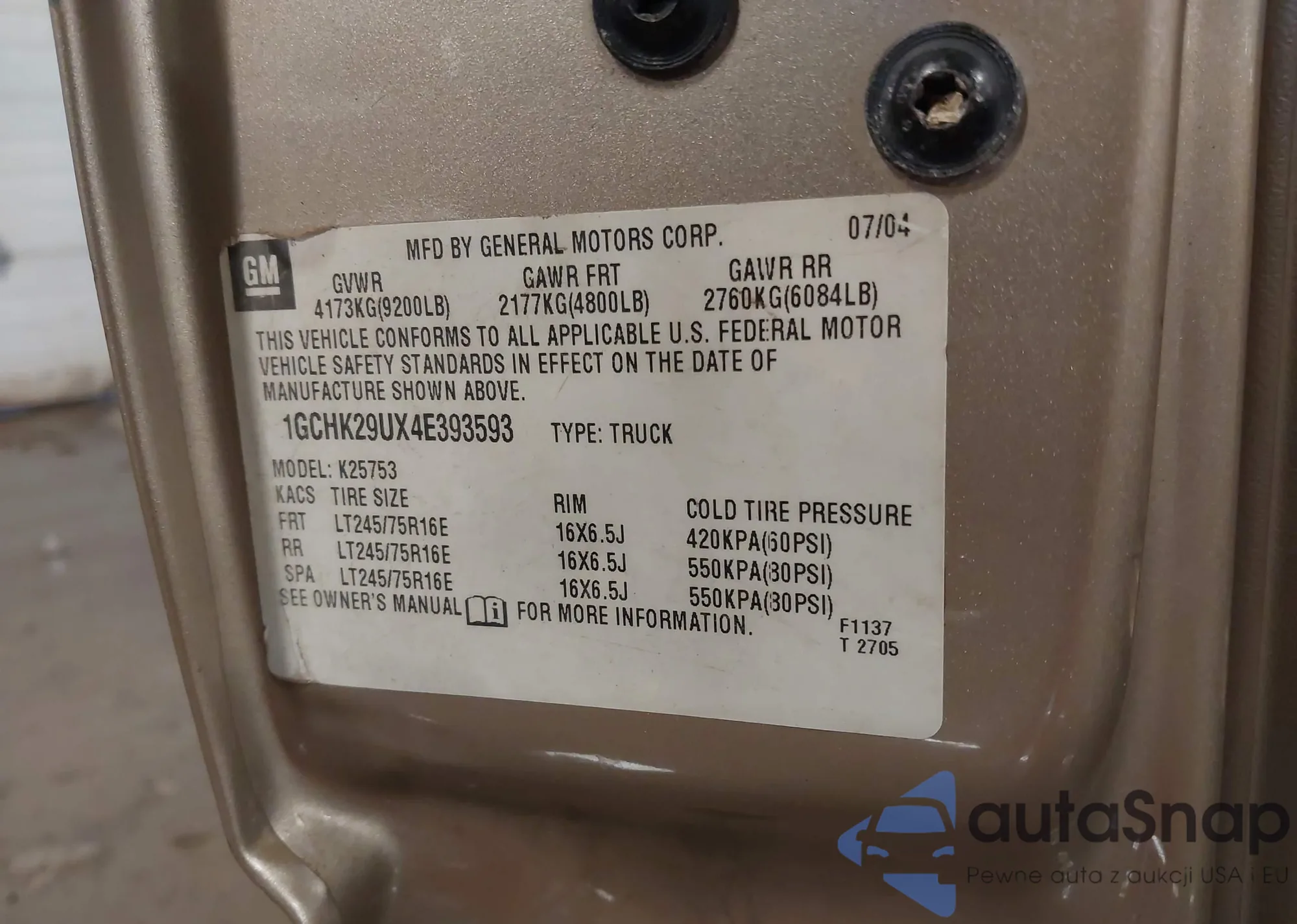 VIN: 1GCHK29UX4E393593