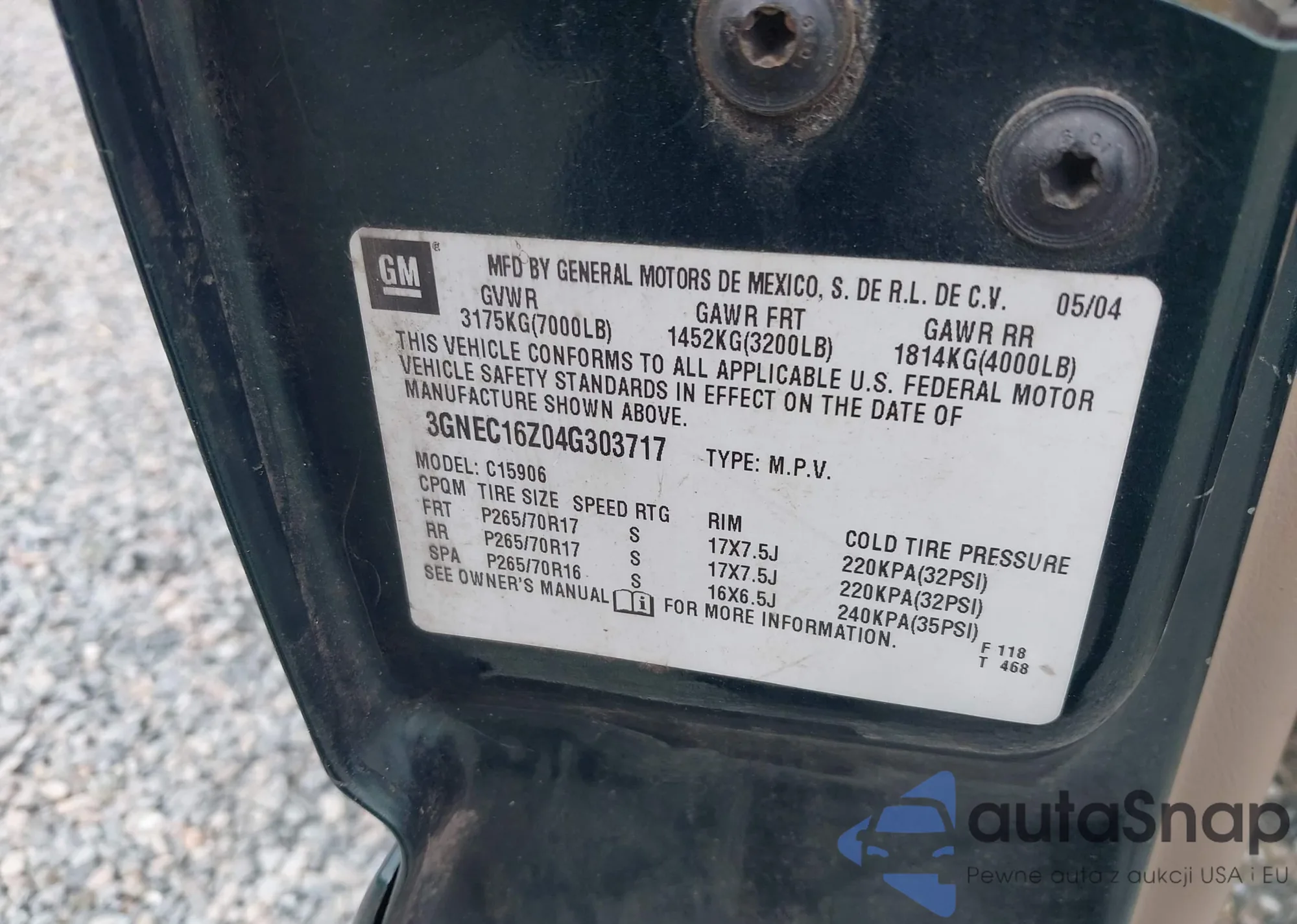 • VIN: 3GNEC16Z04G303717