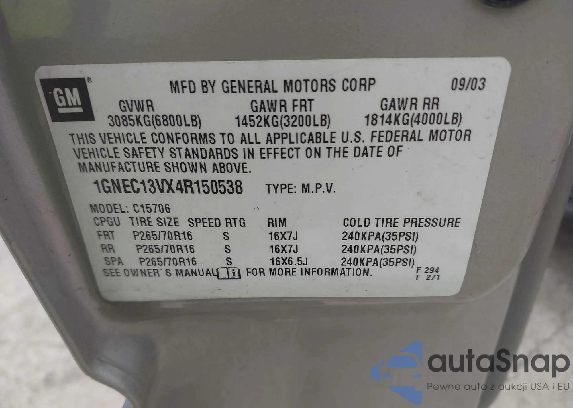 VIN: 1GNEC13VX4R150538