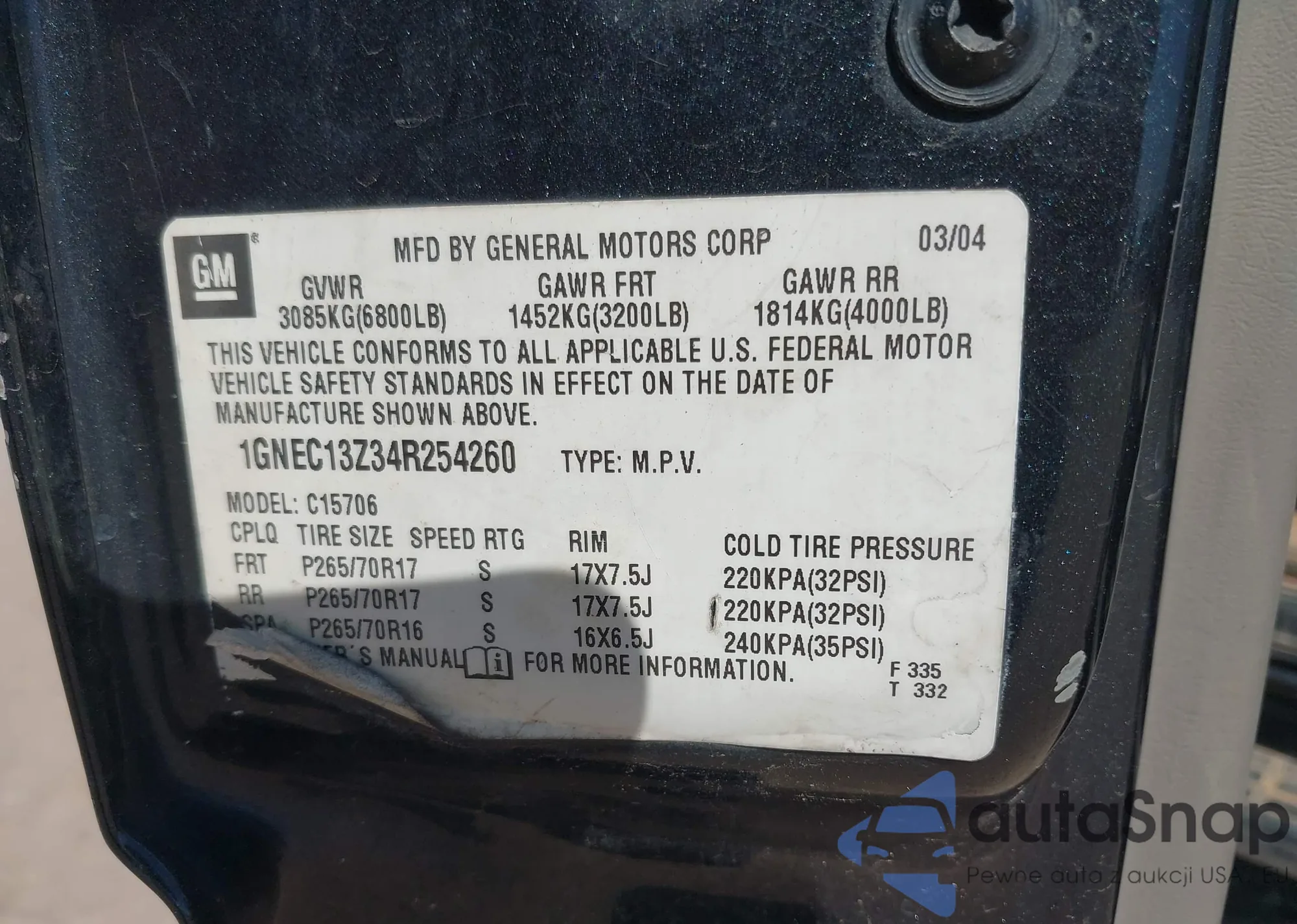 • VIN: 1GNEC13Z34R254260