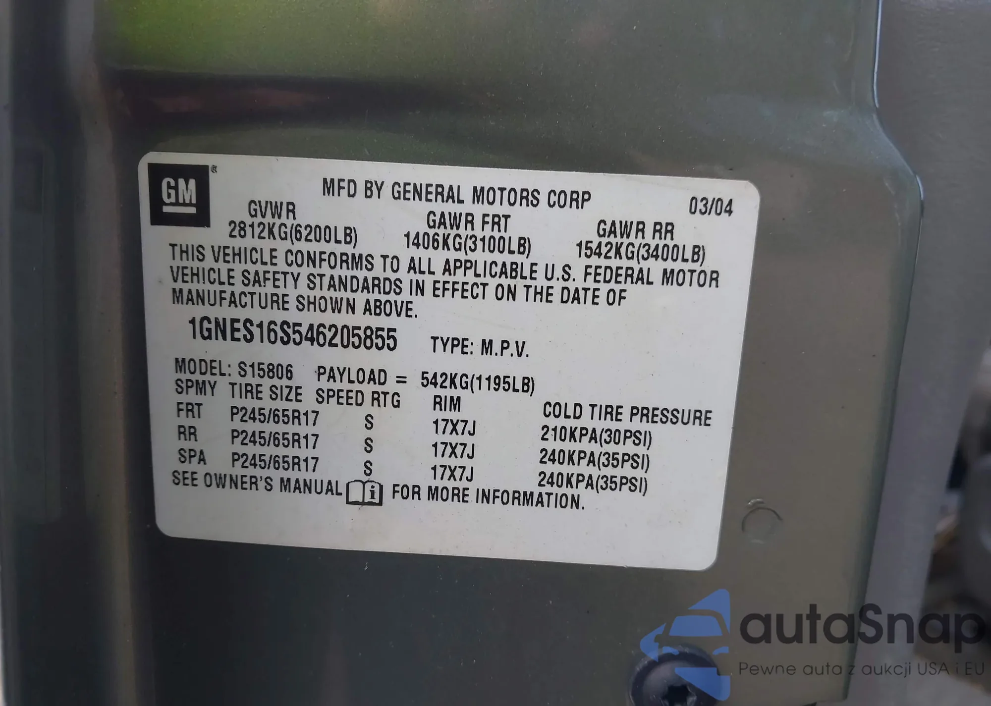 VIN: 1GNES16S546205855