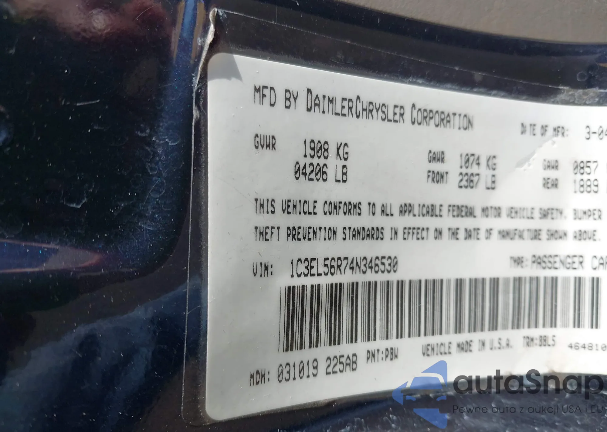 VIN: 1C3EL56R74N346530