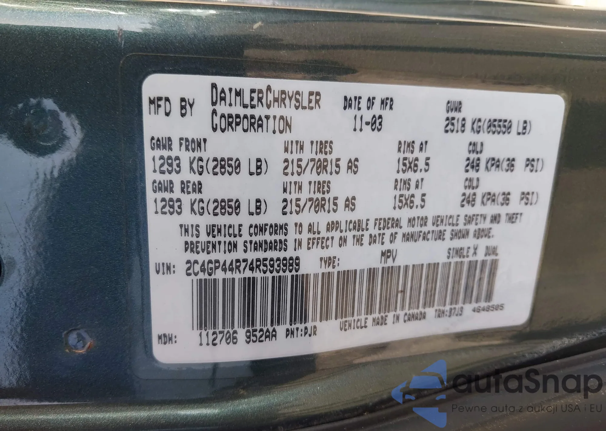Samochód Chrysler Town & Country 2004 (VIN 2C4GP44R74R593989) nie był wcześniej licytowany. Dokumenty są czyste, przebieg odpowiada lub jest niższy niż średnia rynku. Sprzedaje go firma ubezpieczeniowa – polecamy zakup. Dostawa do portu zajmie ok. 6–8 tygodni.