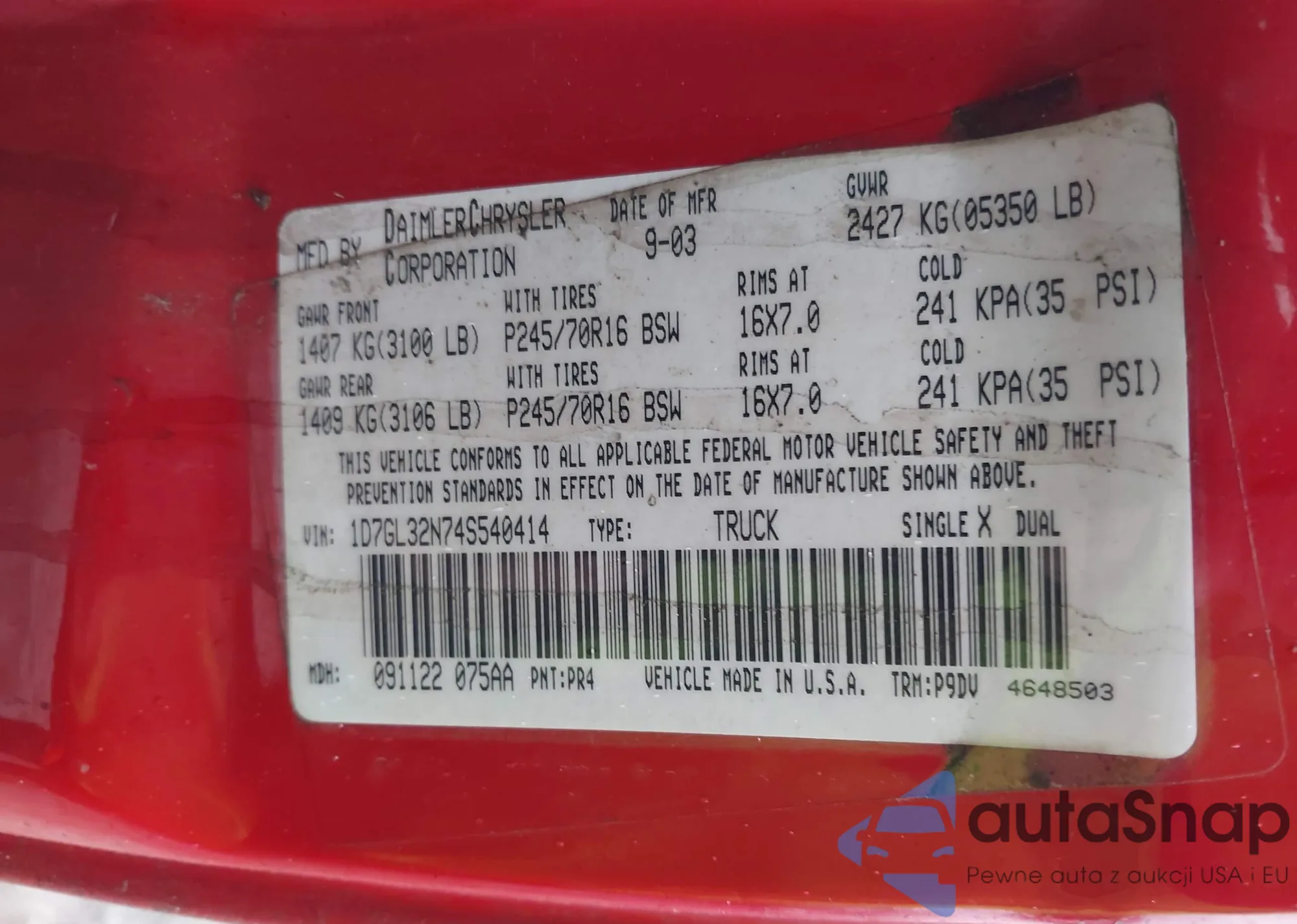 • VIN: 1D7GL32N74S540414