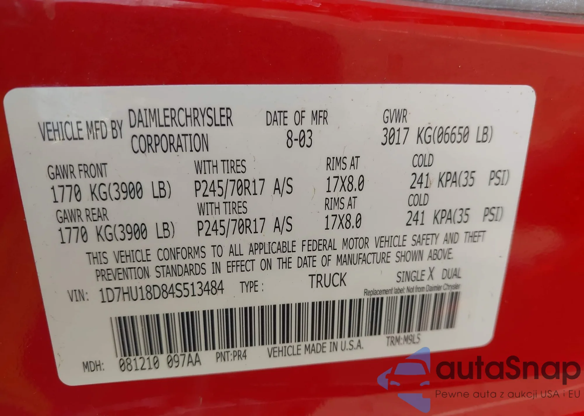 VIN: 1D7HU18D84S513484