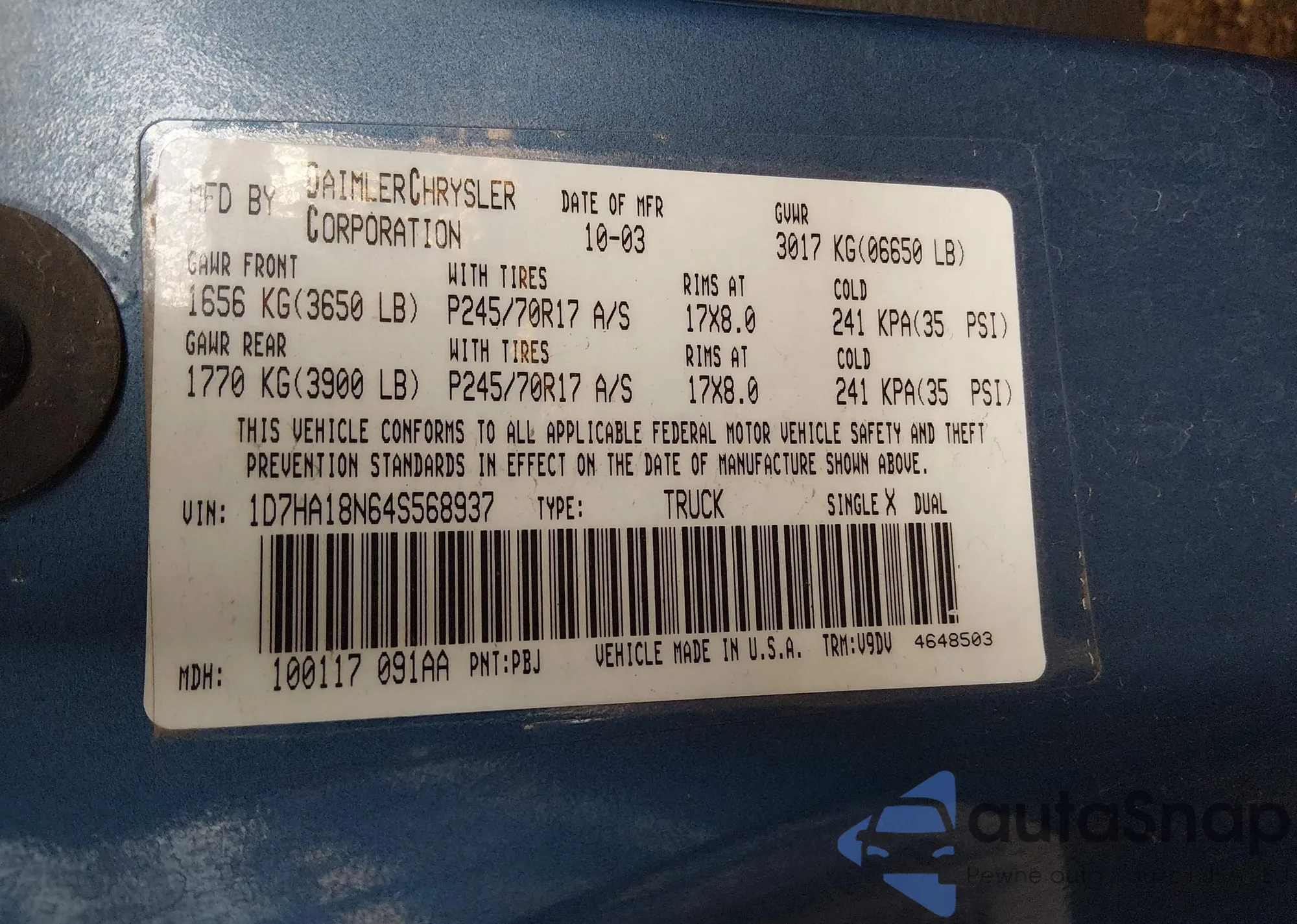 Samochód Dodge RAM 2004 (VIN 1D7HA18N64S568937) nie był wcześniej licytowany. Dokumenty są czyste, przebieg odpowiada lub jest niższy niż średnia rynku. Sprzedaje go firma ubezpieczeniowa – polecamy zakup. Dostawa do portu zajmie ok. 6–8 tygodni.