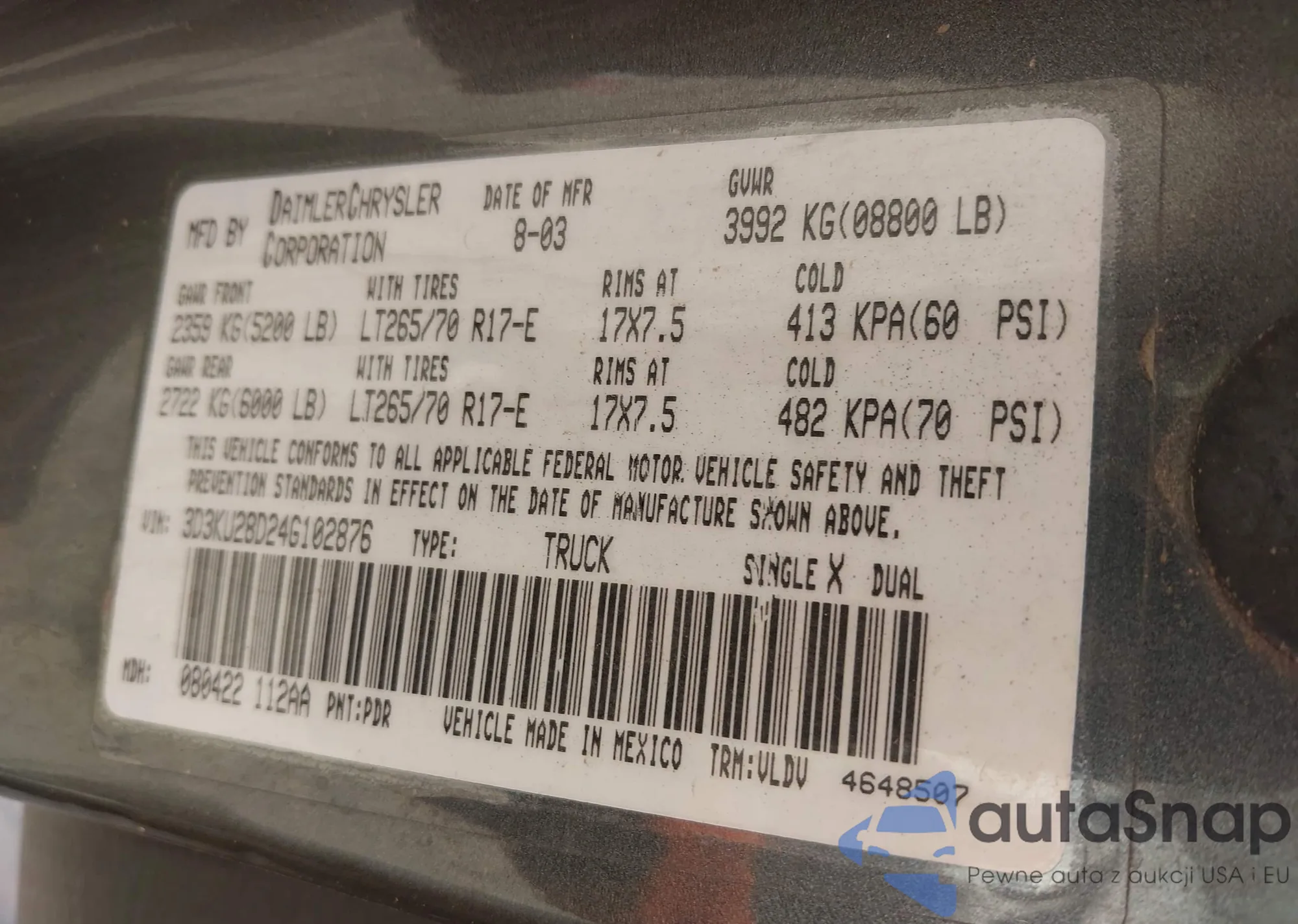 VIN: 3D3KU28D24G102876