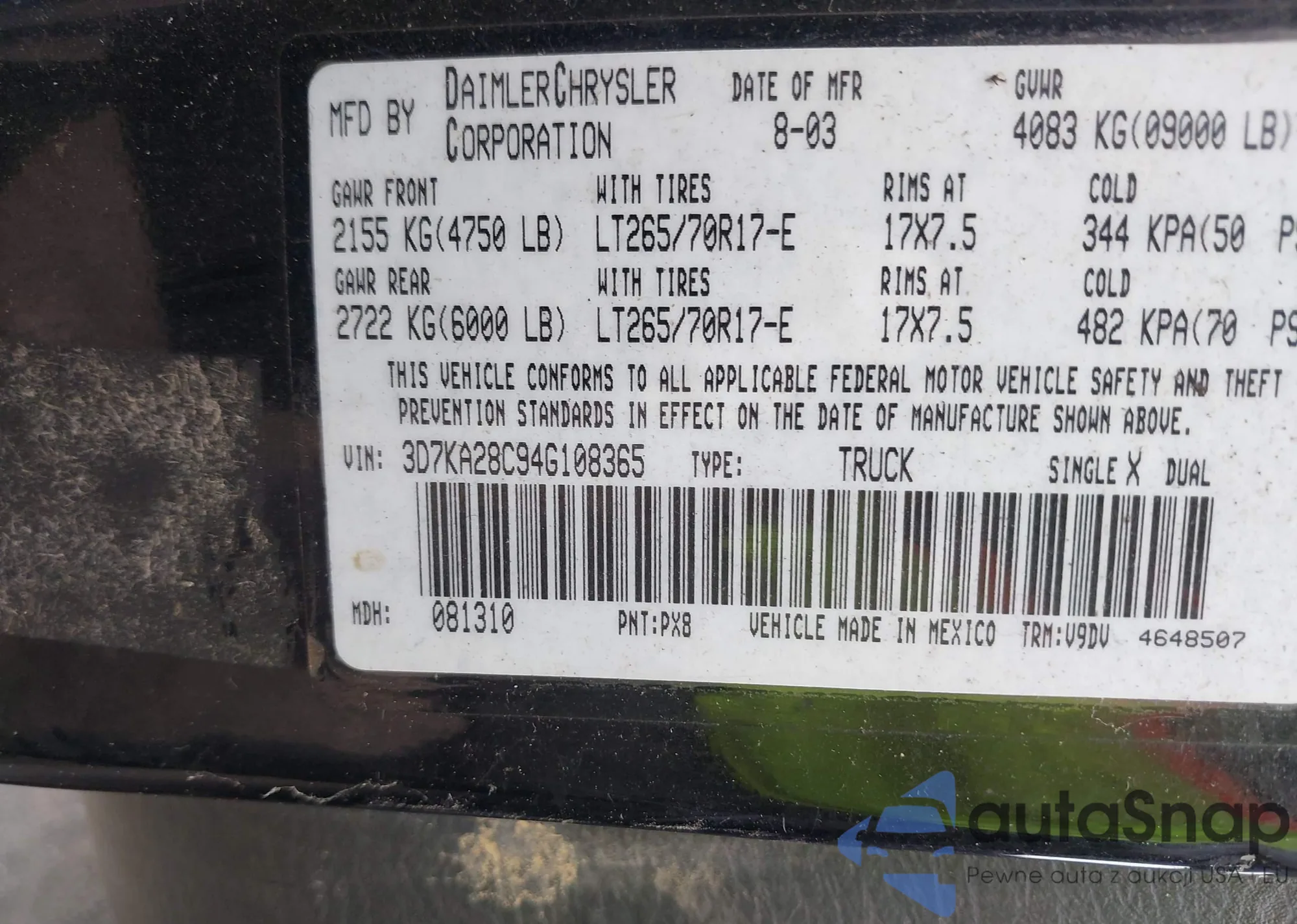 VIN: 3D7KA28C94G108365