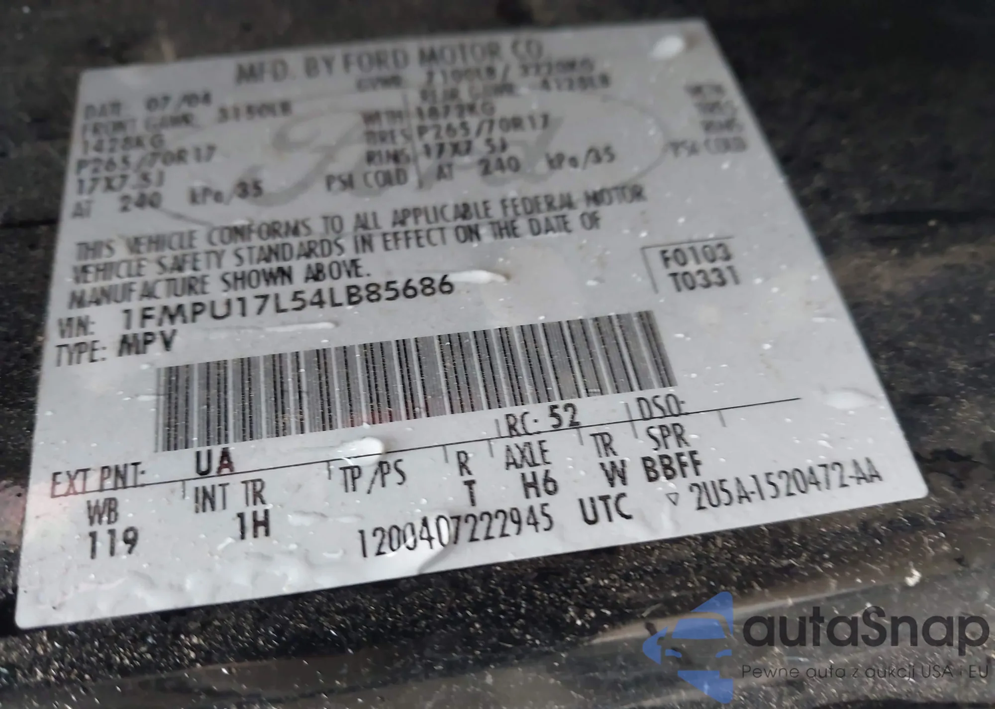 VIN: 1FMPU17L54LB85686