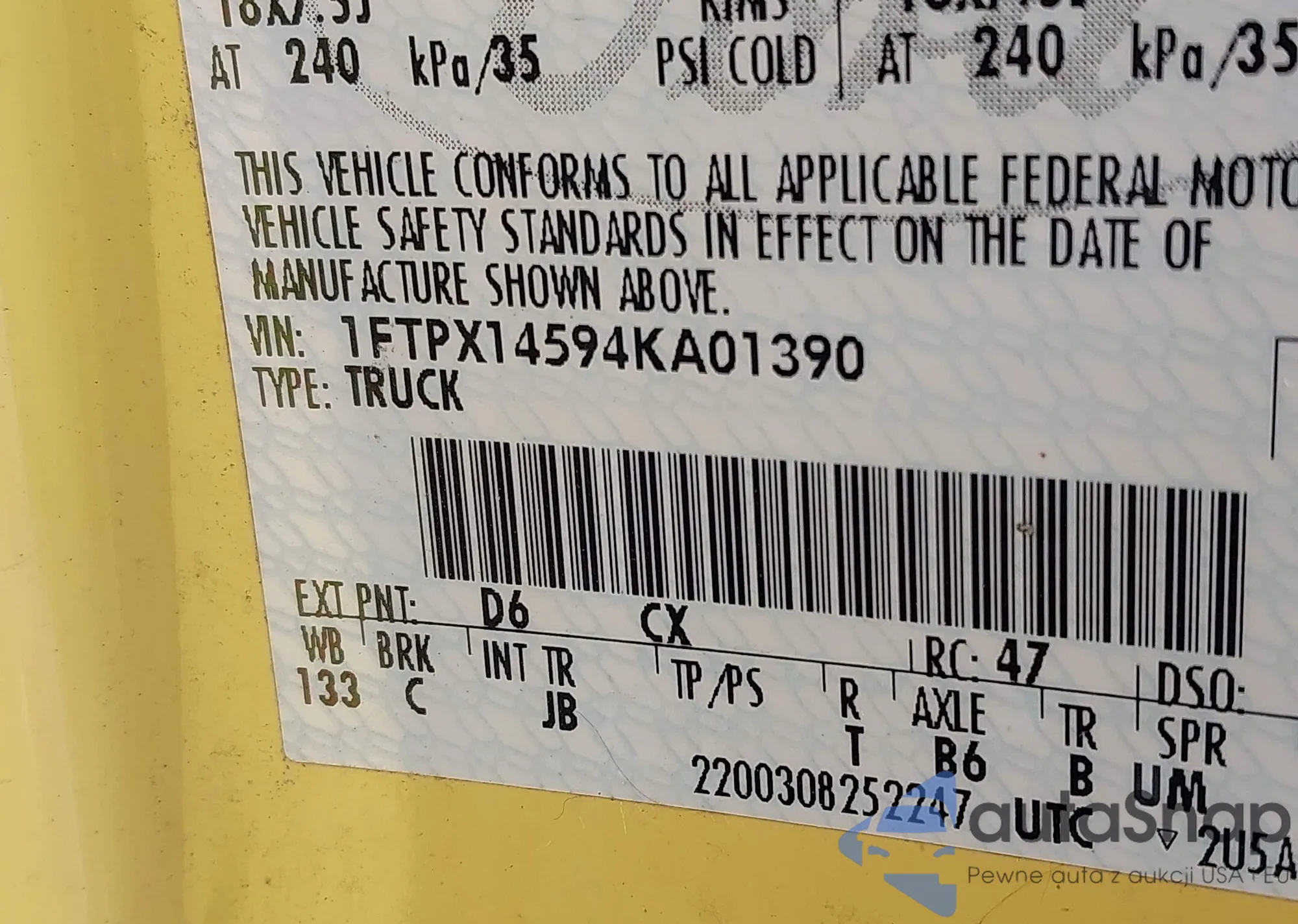 Samochód Ford F-150 2004 (VIN 1FTPX14594KA01390) nie był wcześniej licytowany. Dokumenty są czyste, przebieg odpowiada lub jest niższy niż średnia rynku. Sprzedaje go firma ubezpieczeniowa – polecamy zakup. Dostawa do portu zajmie ok. 6–8 tygodni.