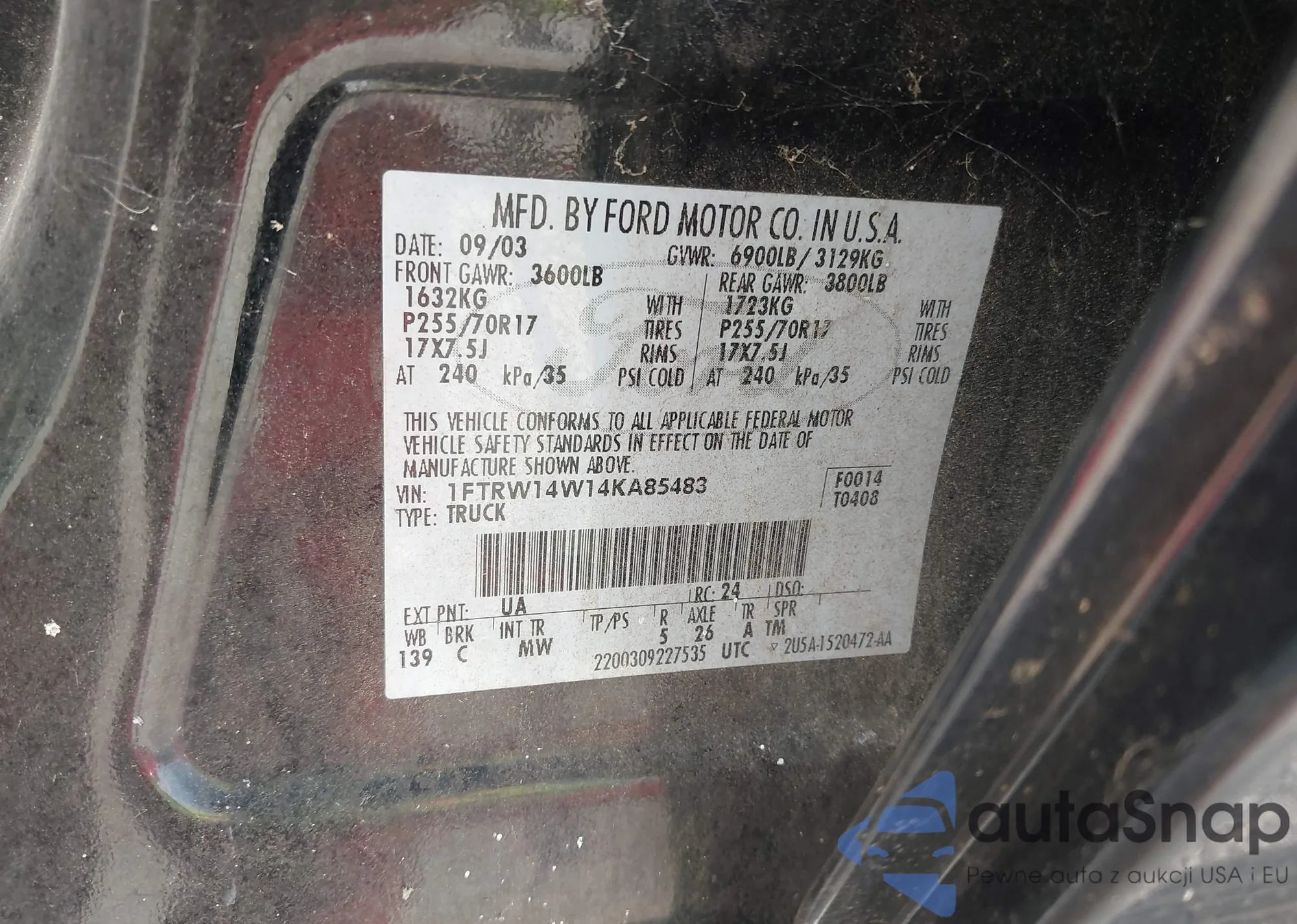 VIN: 1FTRW14W14KA85483