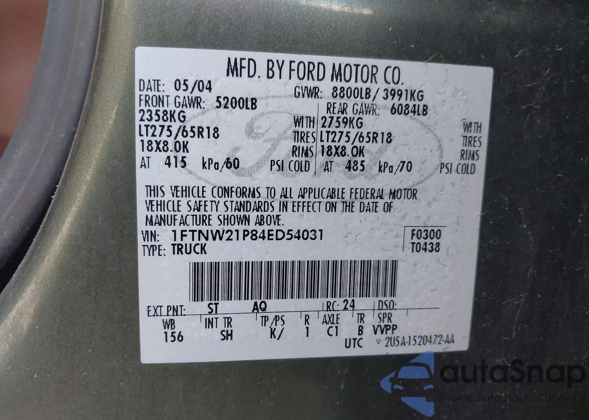 VIN: 1FTNW21P84ED54031