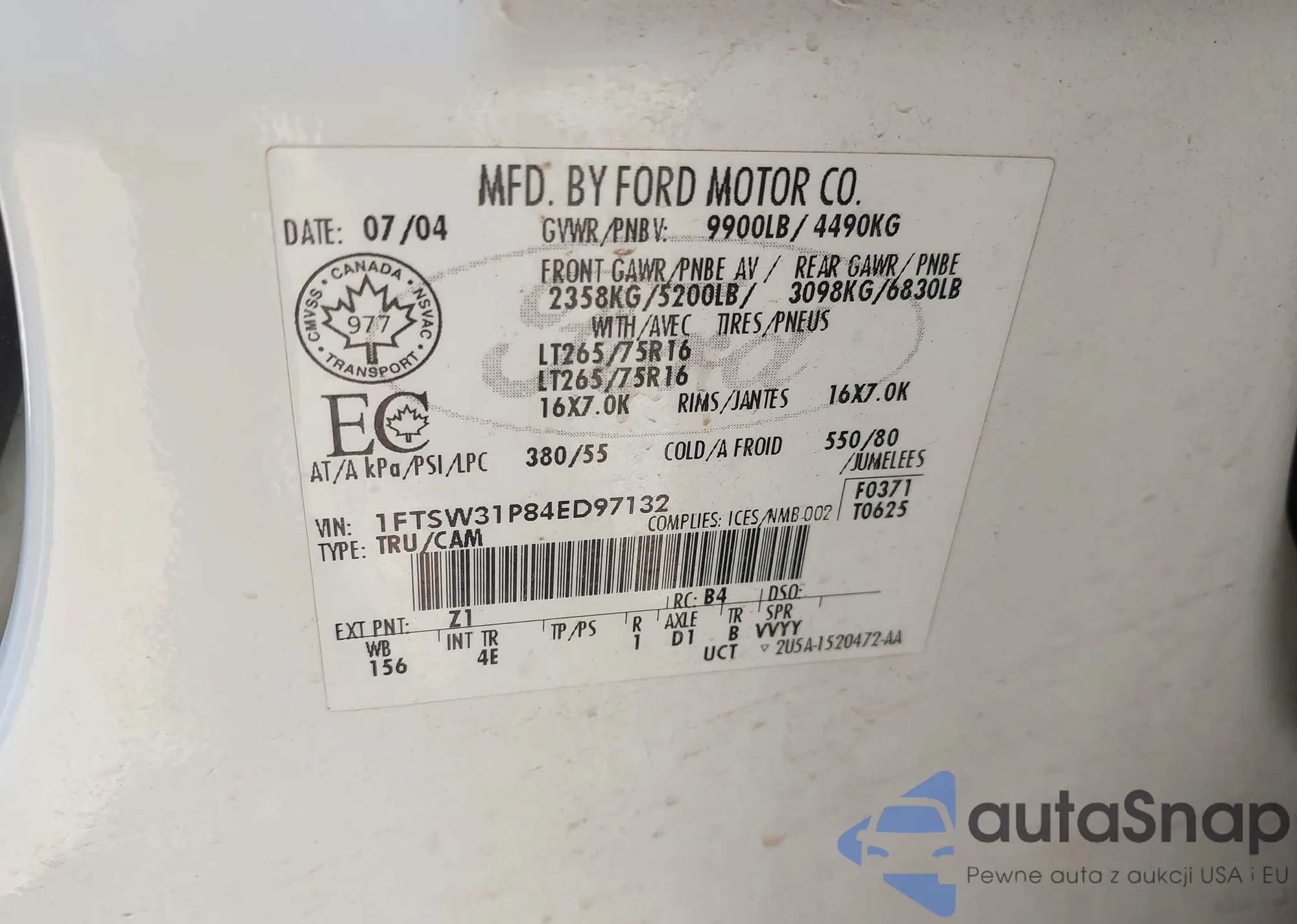 VIN: 1FTSW31P84ED97132