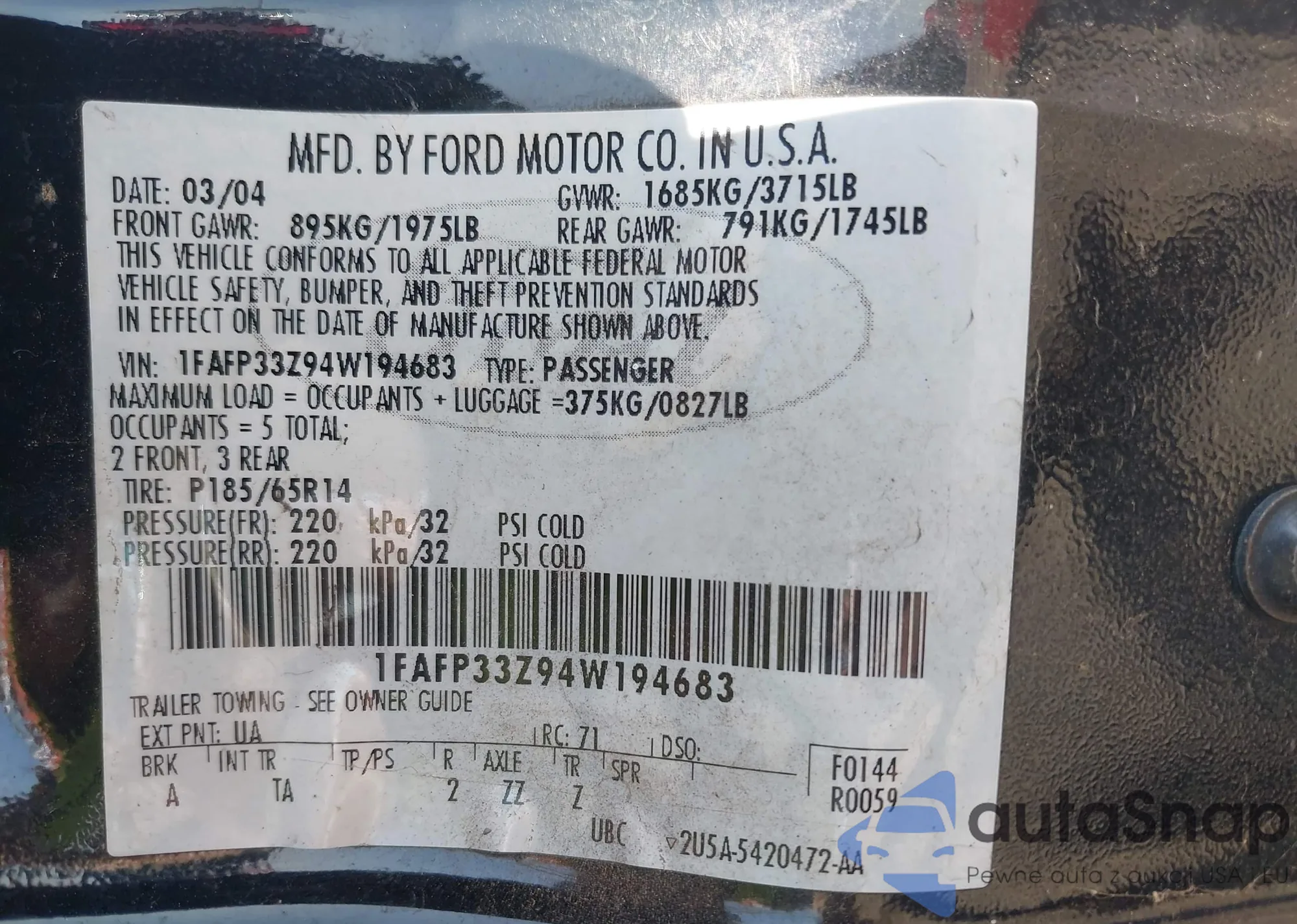 VIN: 1FAFP33Z94W194683