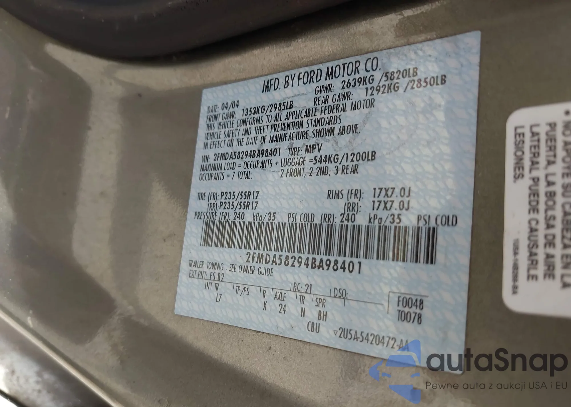 VIN: 2FMDA58294BA98401