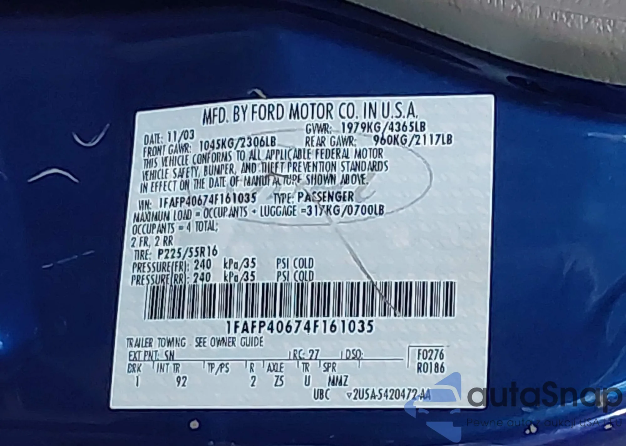 VIN: 1FAFP40674F161035