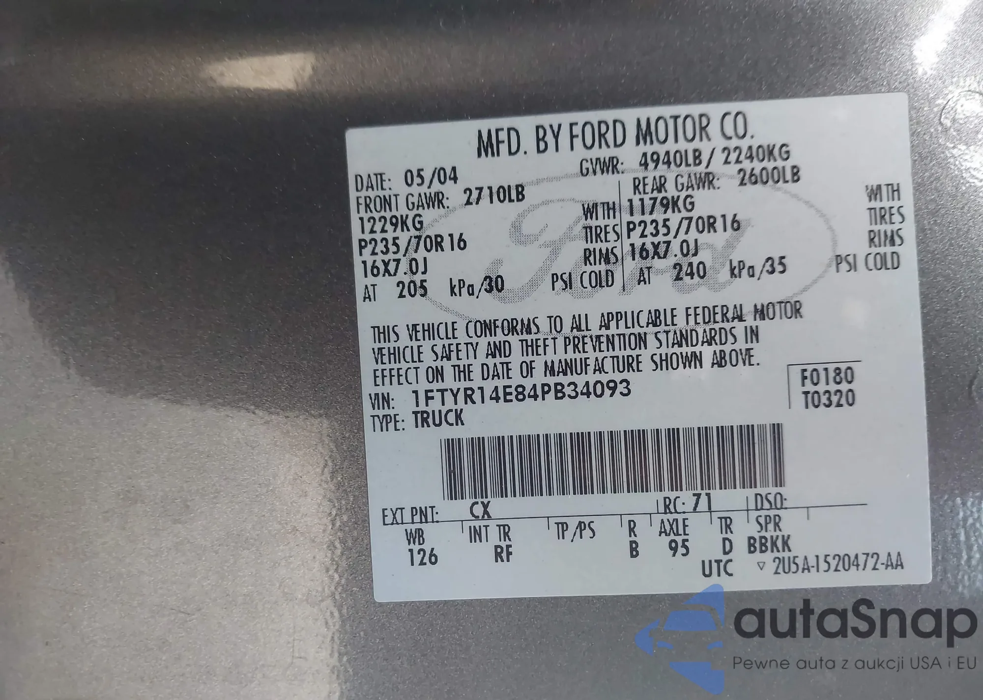 • VIN: 1FTYR14E84PB34093