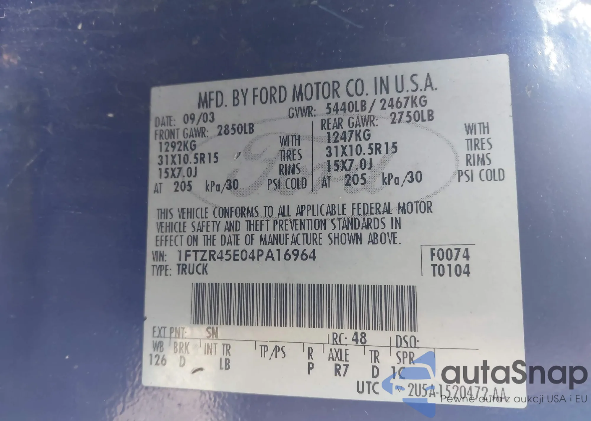 VIN: 1FTZR45E04PA16964