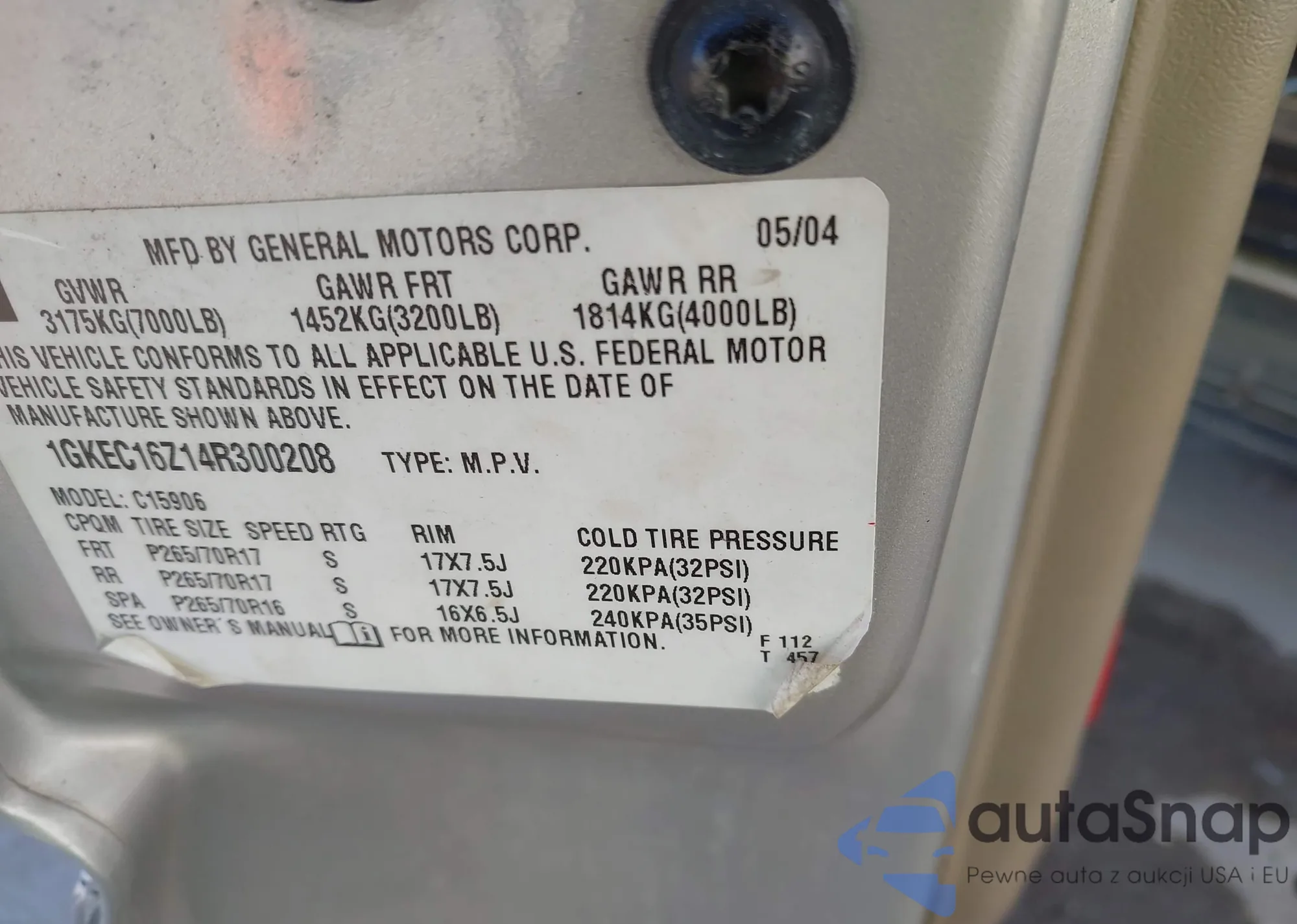 VIN: 1GKEC16Z14R300208