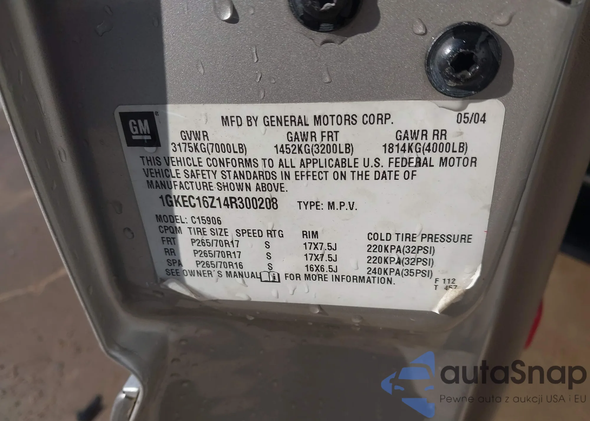 Samochód GMC Yukon 2004 (VIN 1GKEC16Z14R300208) był już licytowany 1 razy i/lub sprzedaje go niezweryfikowany sprzedawca. Zalecamy raport Carfax i potwierdzenie możliwości rejestracji pojazdu przed zakupem.
