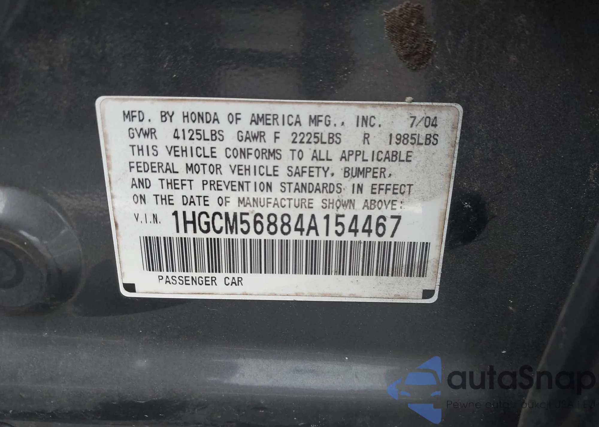 VIN: 1HGCM56884A154467