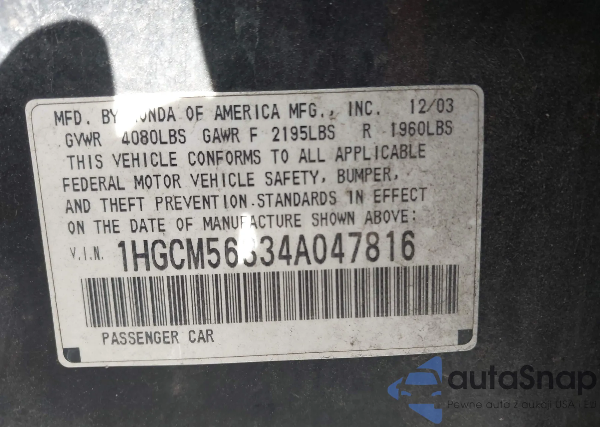 VIN: 1HGCM56334A047816