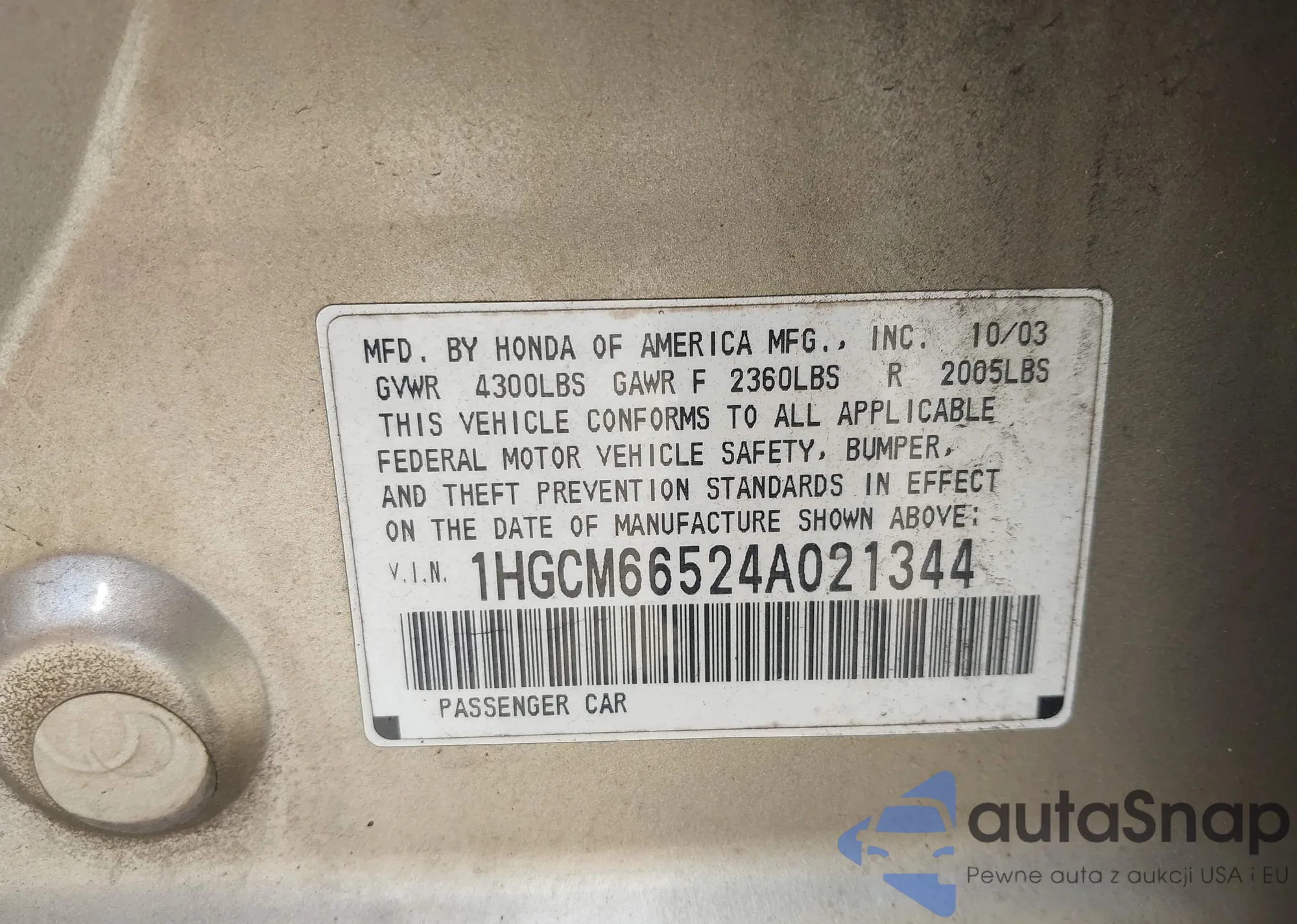 VIN: 1HGCM66524A021344