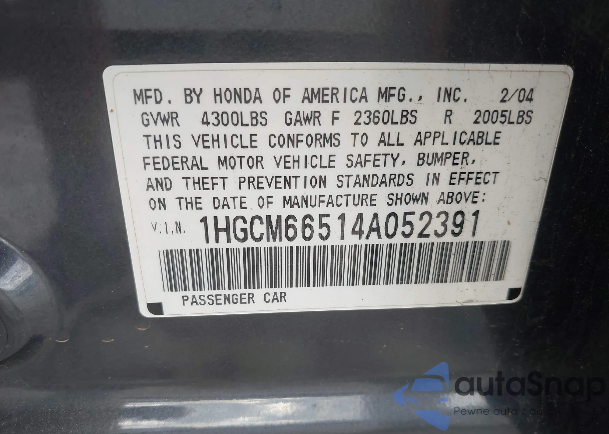 VIN: 1HGCM66514A052391
